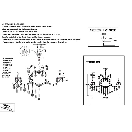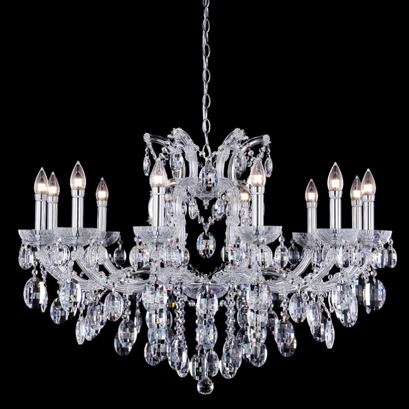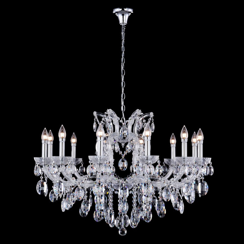Люстра подвесная с 12-ю лампочками и прозрачными хрустальными подвесками на хромированном основании Crystal lamps