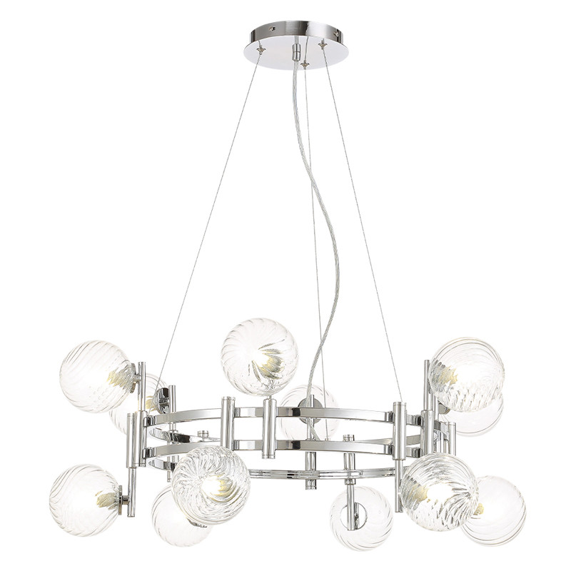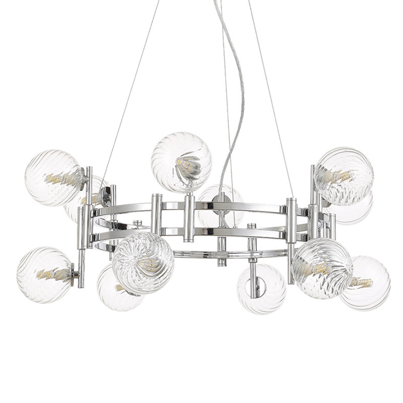 Люстра подвесная с 12-ю рельефными прозрачными плафонами из стекла и основанием цвета Хром Perforated Glass Bubbles