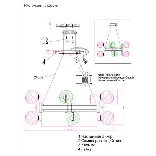 Высота цепи/троса, см — 200, Высота с цепью/тросом, см — 228