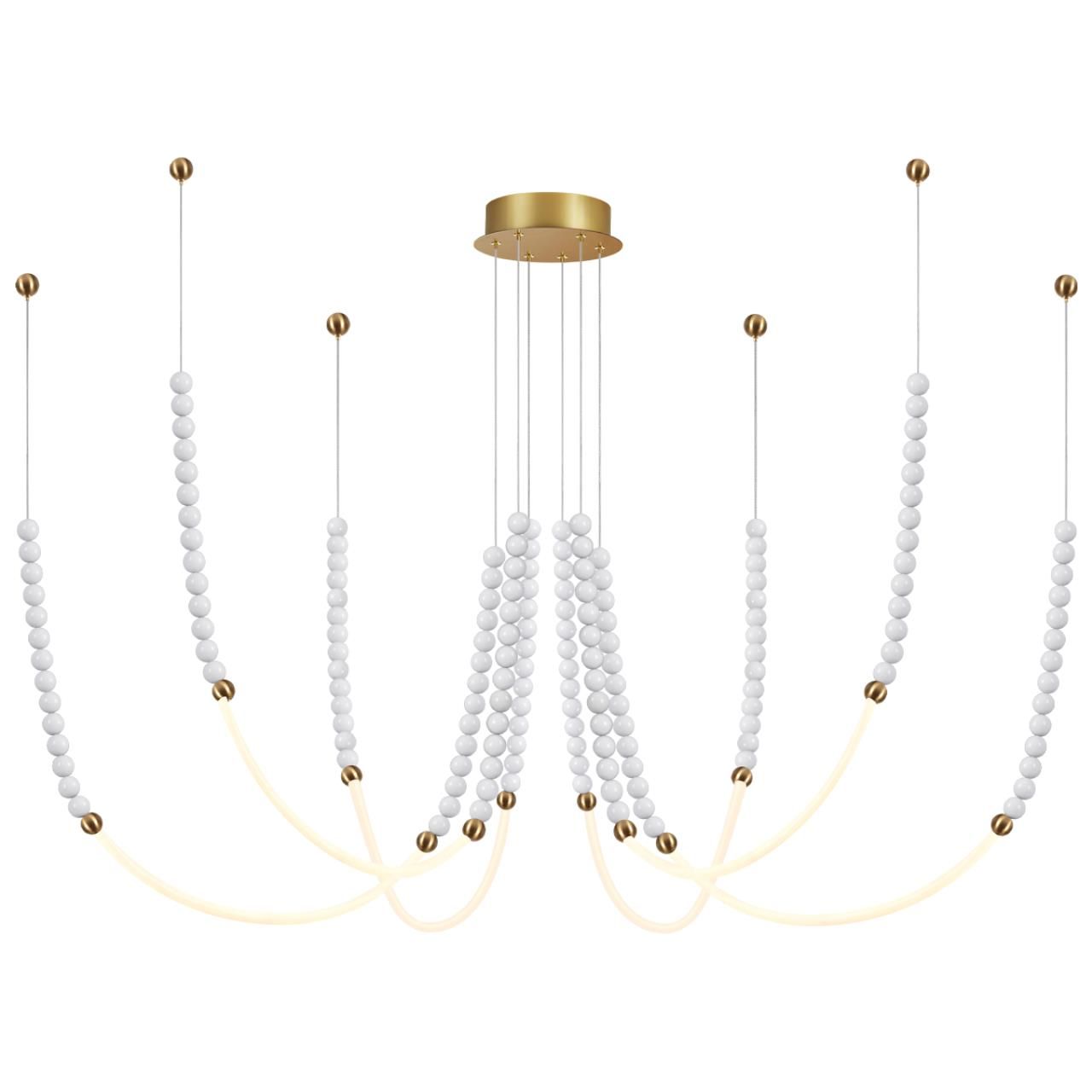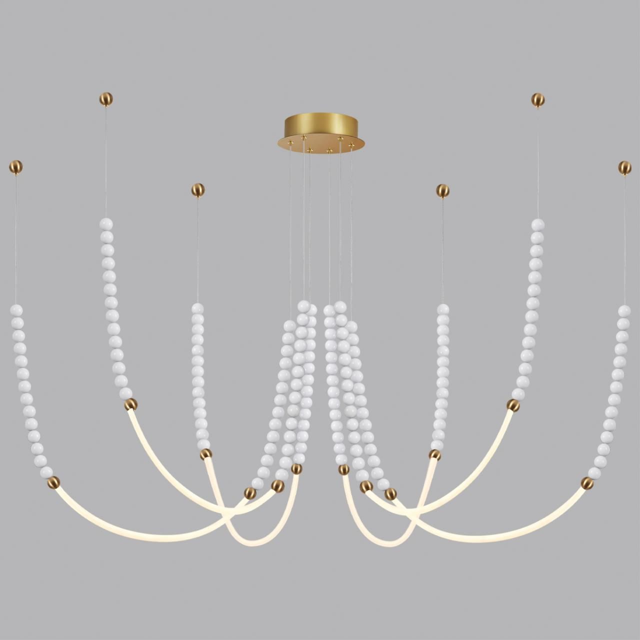 Люстра подвесная с 6-ю изогнутыми плафонами и белыми декоративными шариками PEARLS Suspension