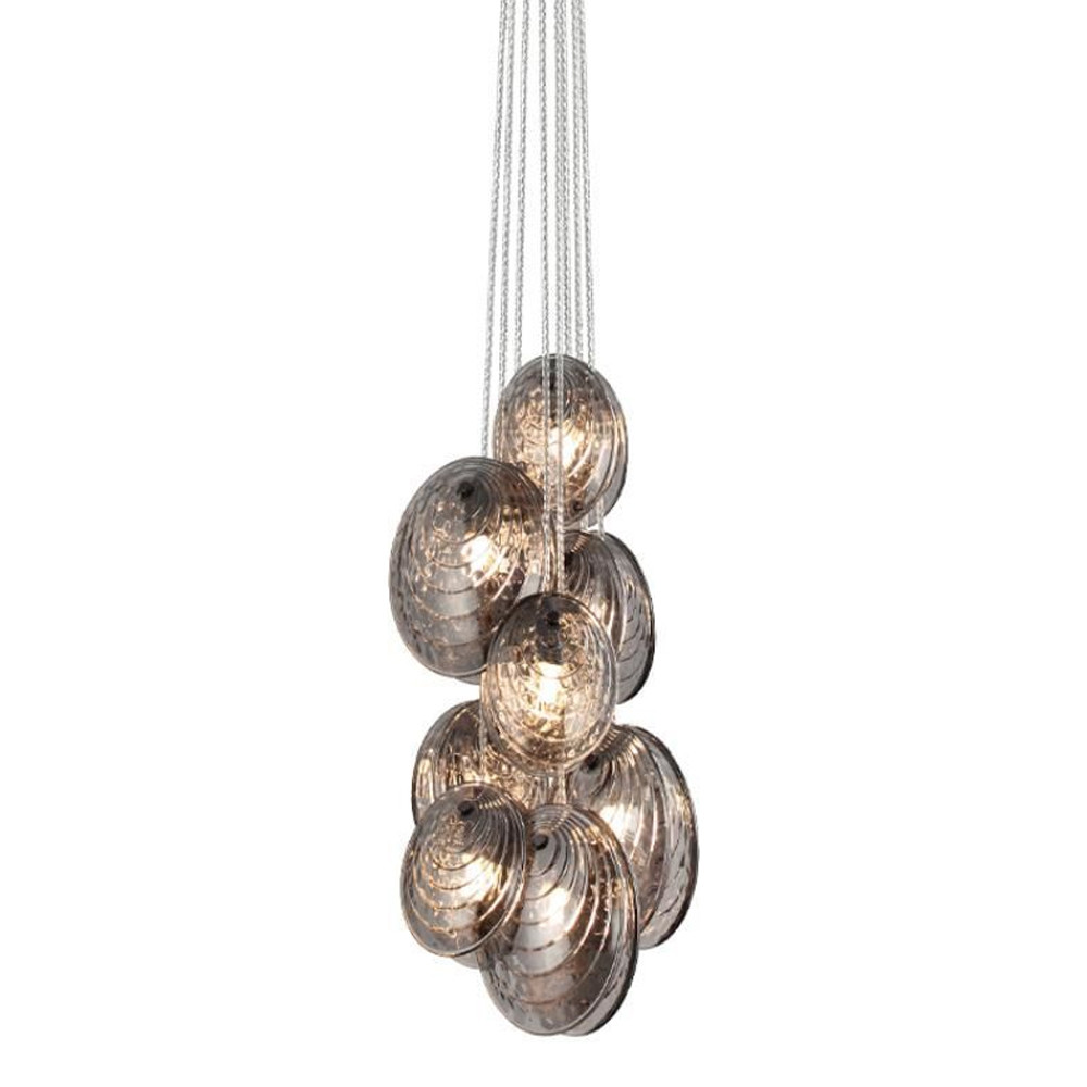 Люстра подвесная с 8-ю круглыми плафонами из рельефного стекла Disc Light