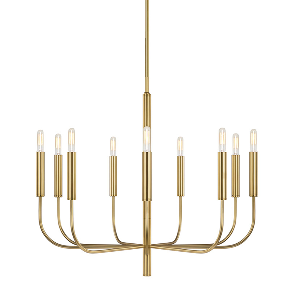 Люстра Elstead Lighting FE-BRIANNA9-BB. Для этой люстры дополнительно возможно заказать абажуры белого цвета из льна ls359 (в комплект не входят). Изящные изгибы и удлинённые трубчатые формы придают классическому минималистскому силуэту плавность и современное очарование. Основание выполнено в отделке - Латунь, Никель. Можно использовать при освещении гостинной, кухни, спальни, столовой. Поставляется со стержнями 4х305 мм и 1х152 мм