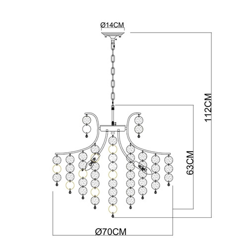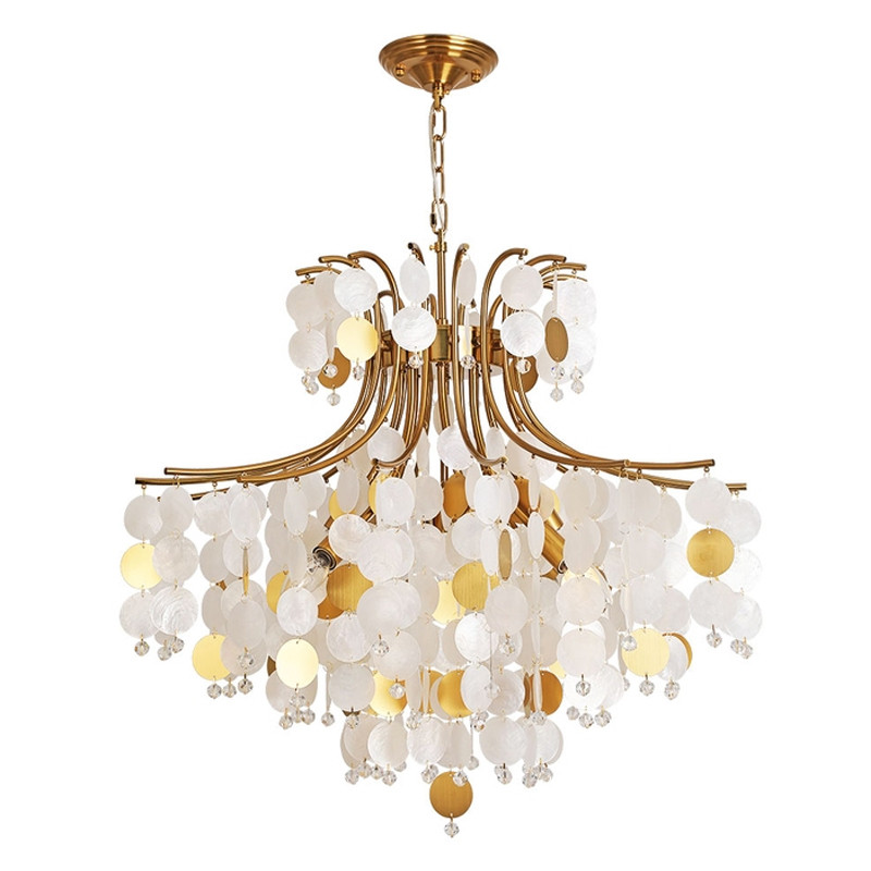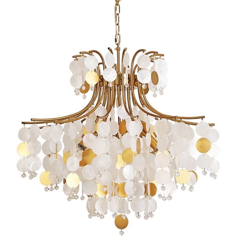 Люстра подвесная с белыми и золотыми круглыми подвесками Диаметр 70 см SHELL Chandelier