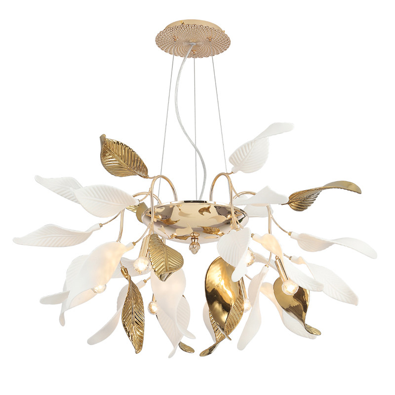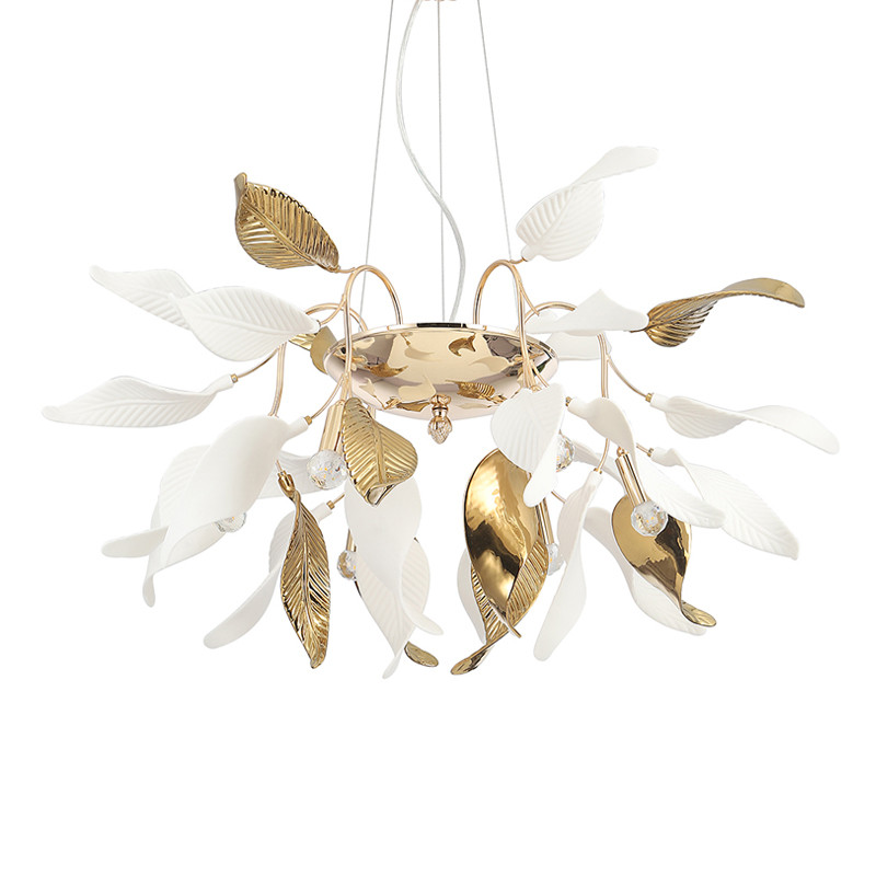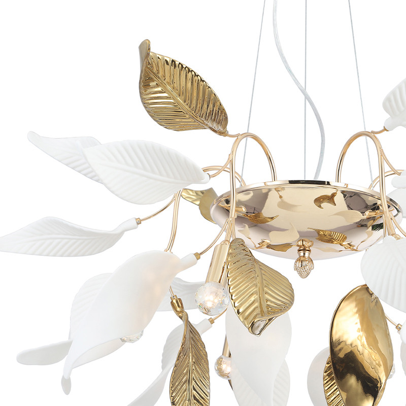Люстра подвесная с белыми матовыми и золотыми глянцевыми листьями Wintery flovers