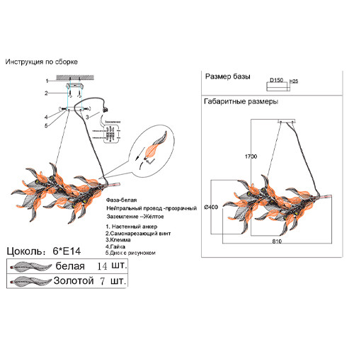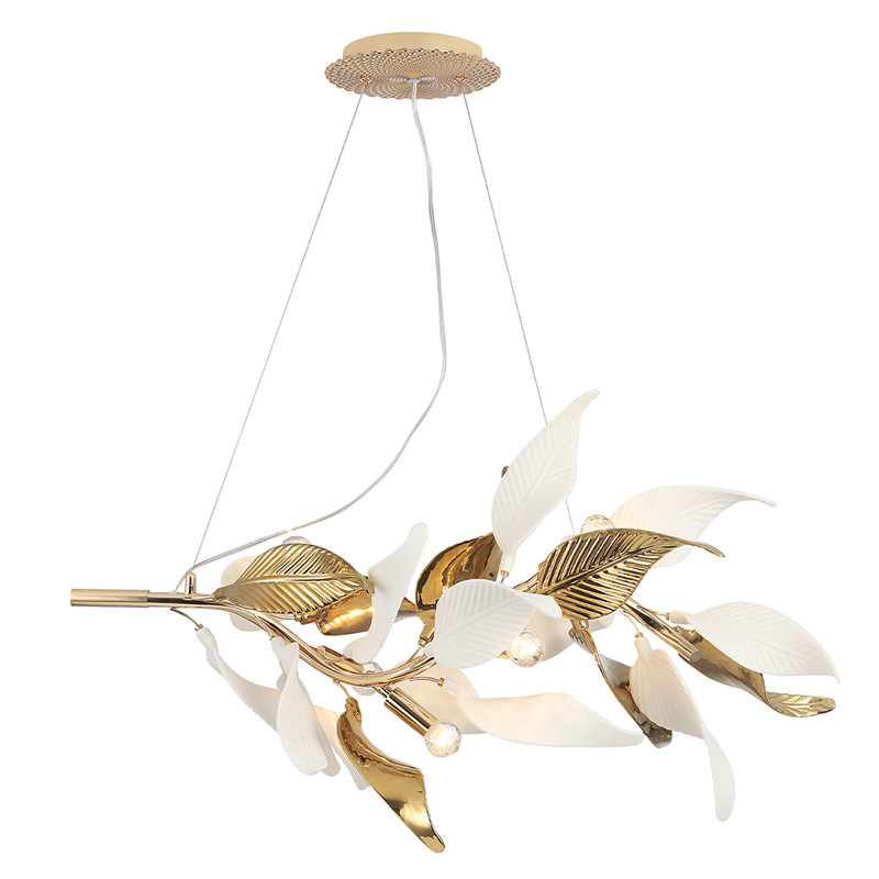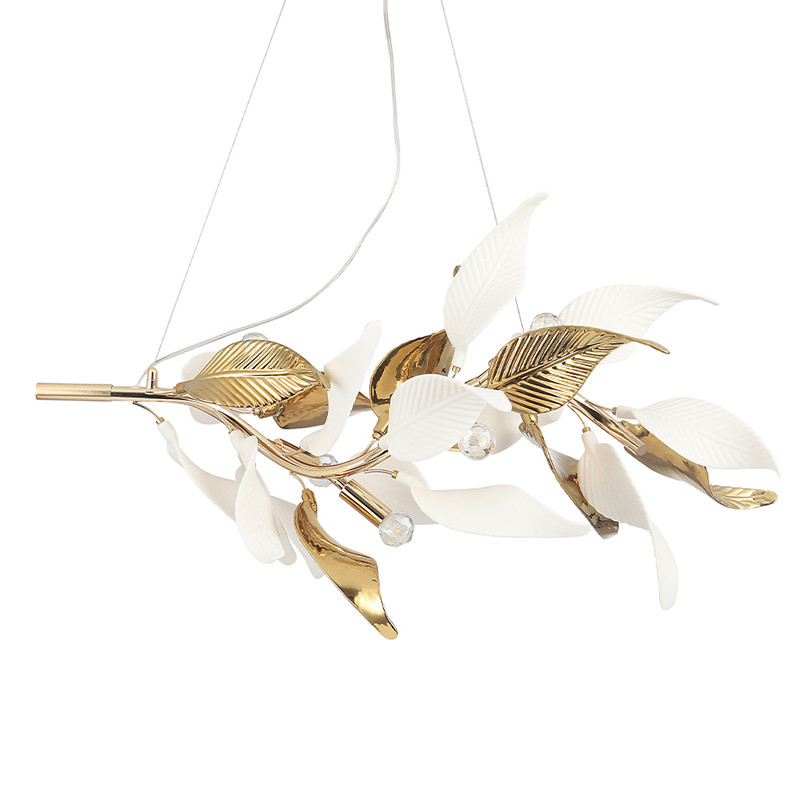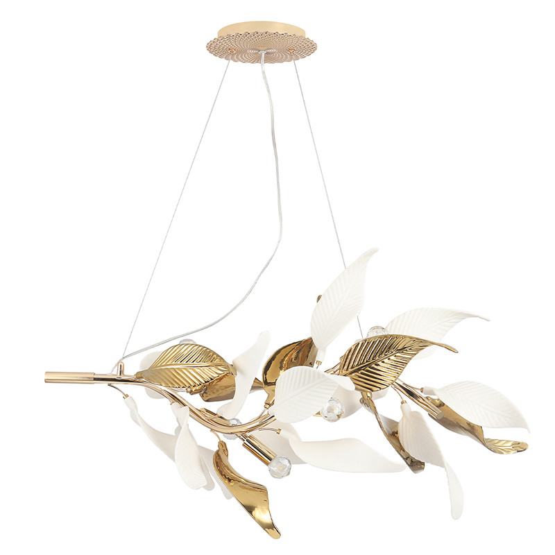 Люстра подвесная с декоративными белыми и золотыми листьями на текстурном основании Wintery flovers