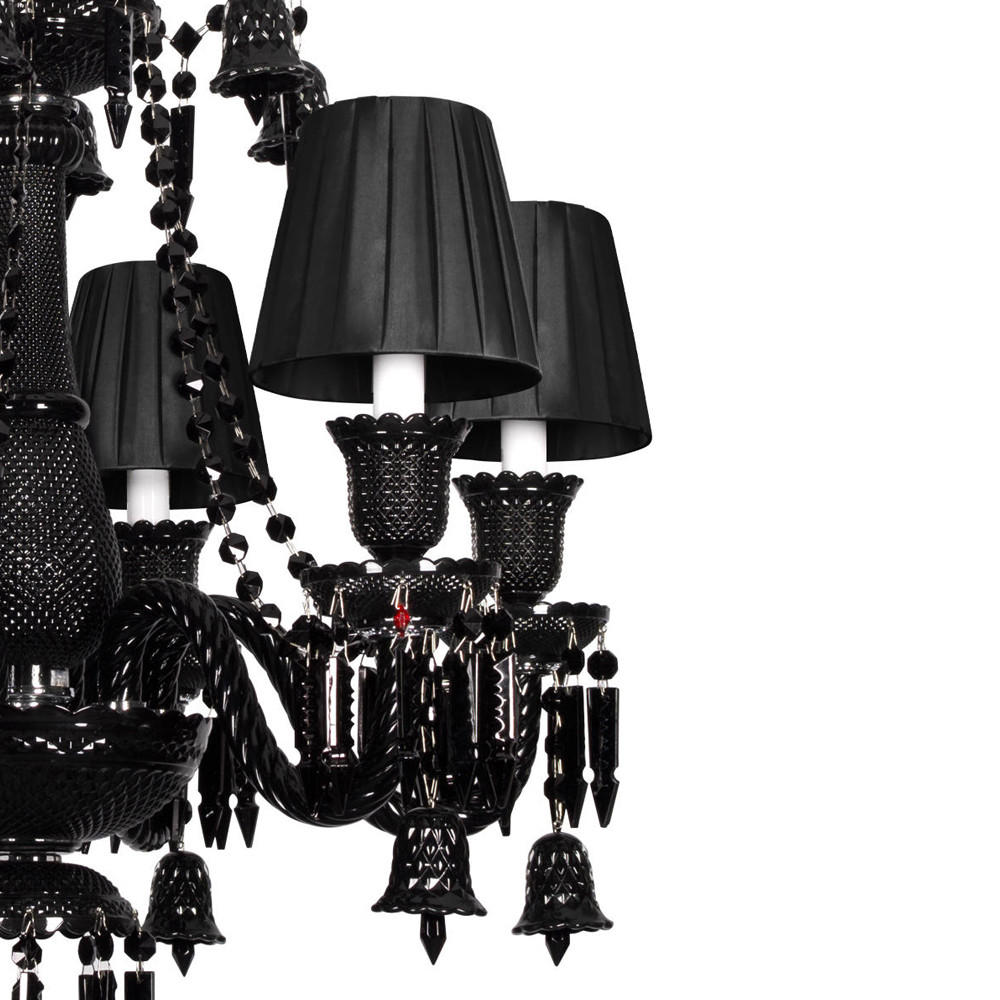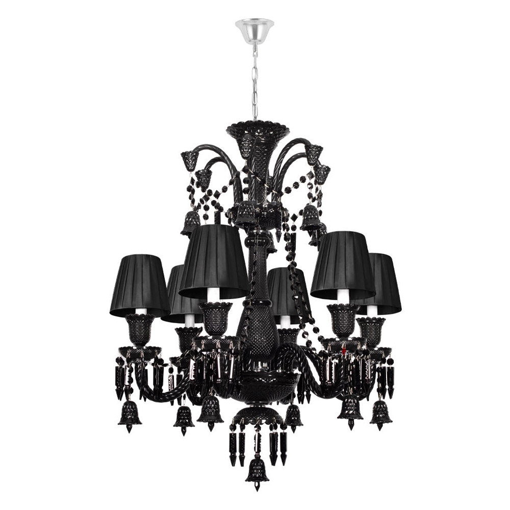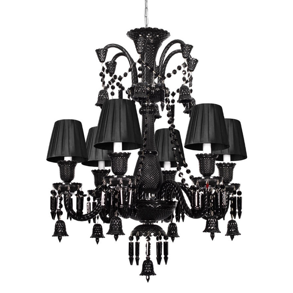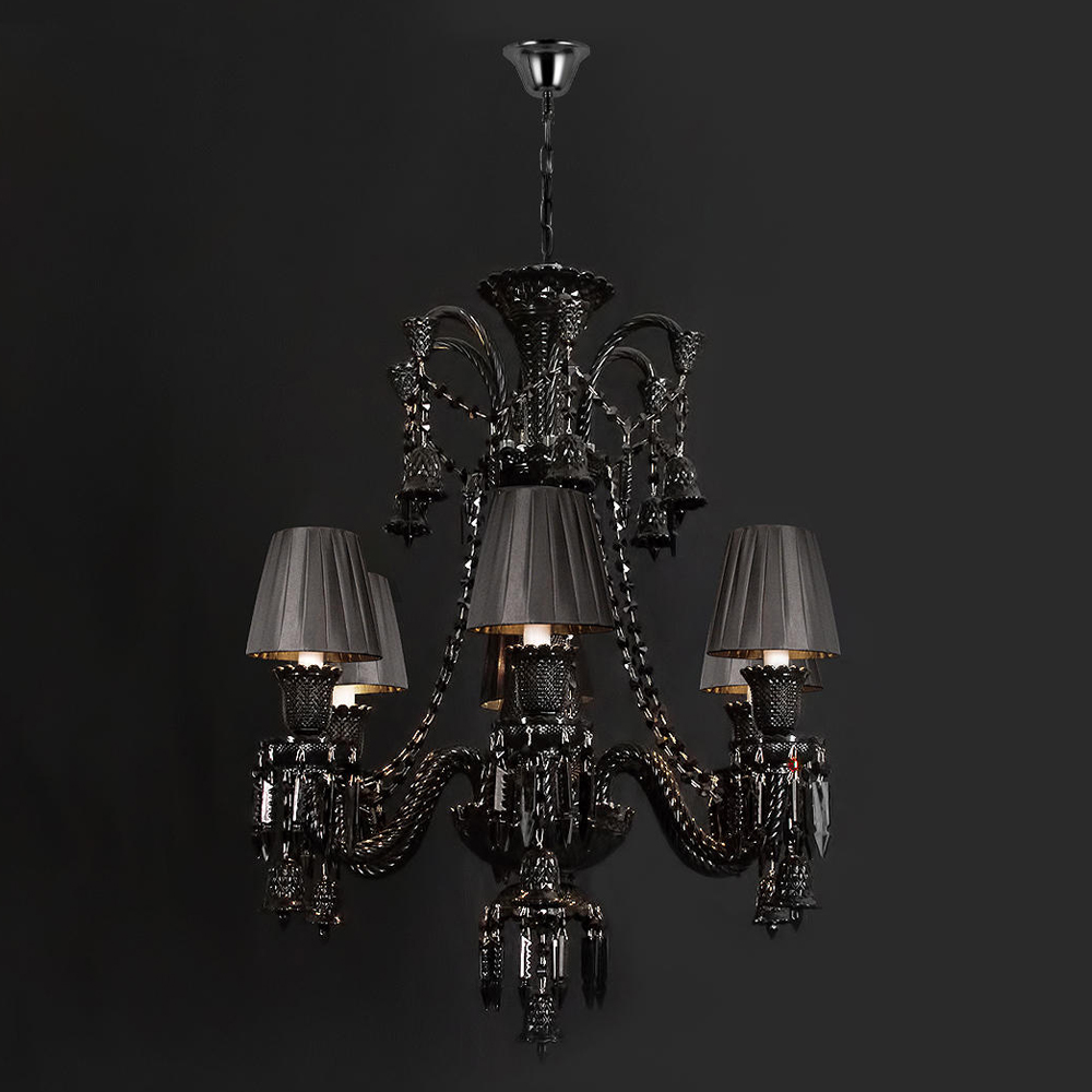 Люстра подвесная с плиссированными абажурами и множеством подвесок черного цвета Диаметр 62 см Lustre Reverie