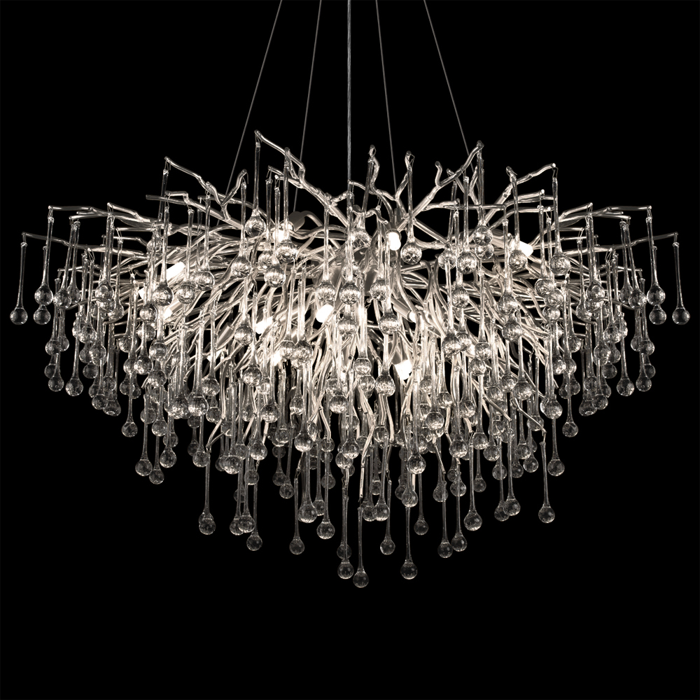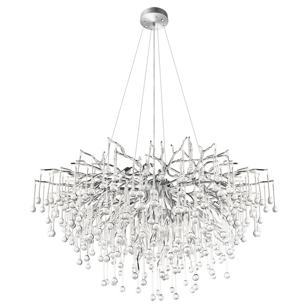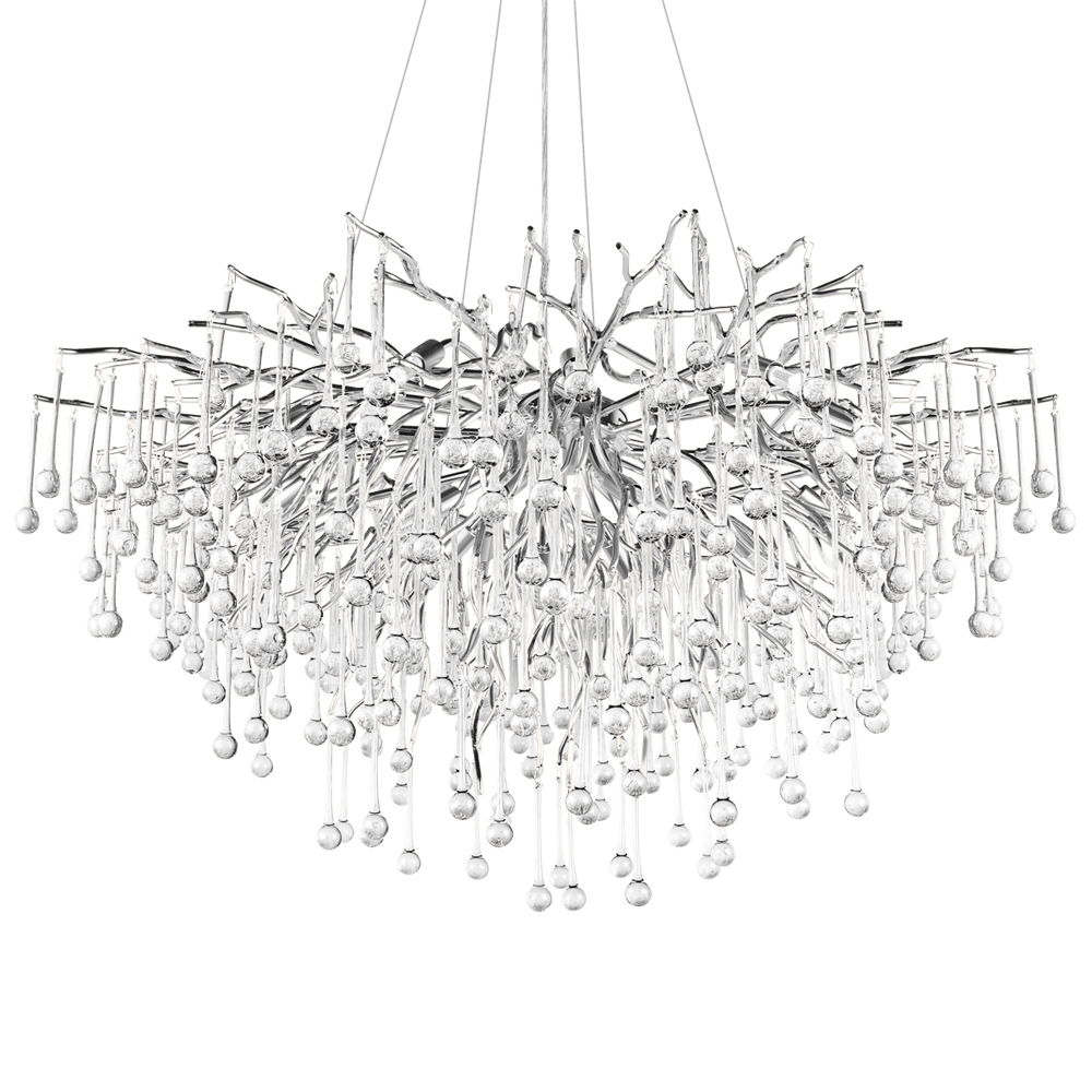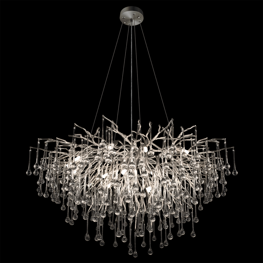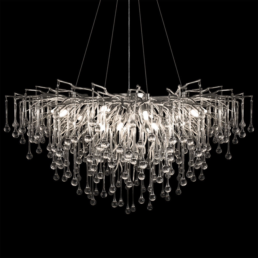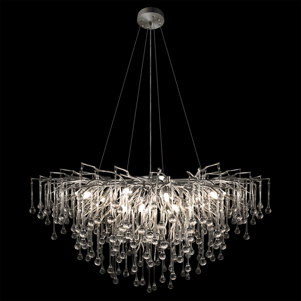 Люстра подвесная с прозрачными стеклянными подвесками в форме капель Диаметр 100 см Droplet Chandelier
