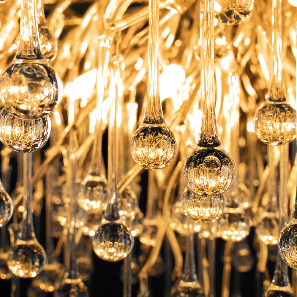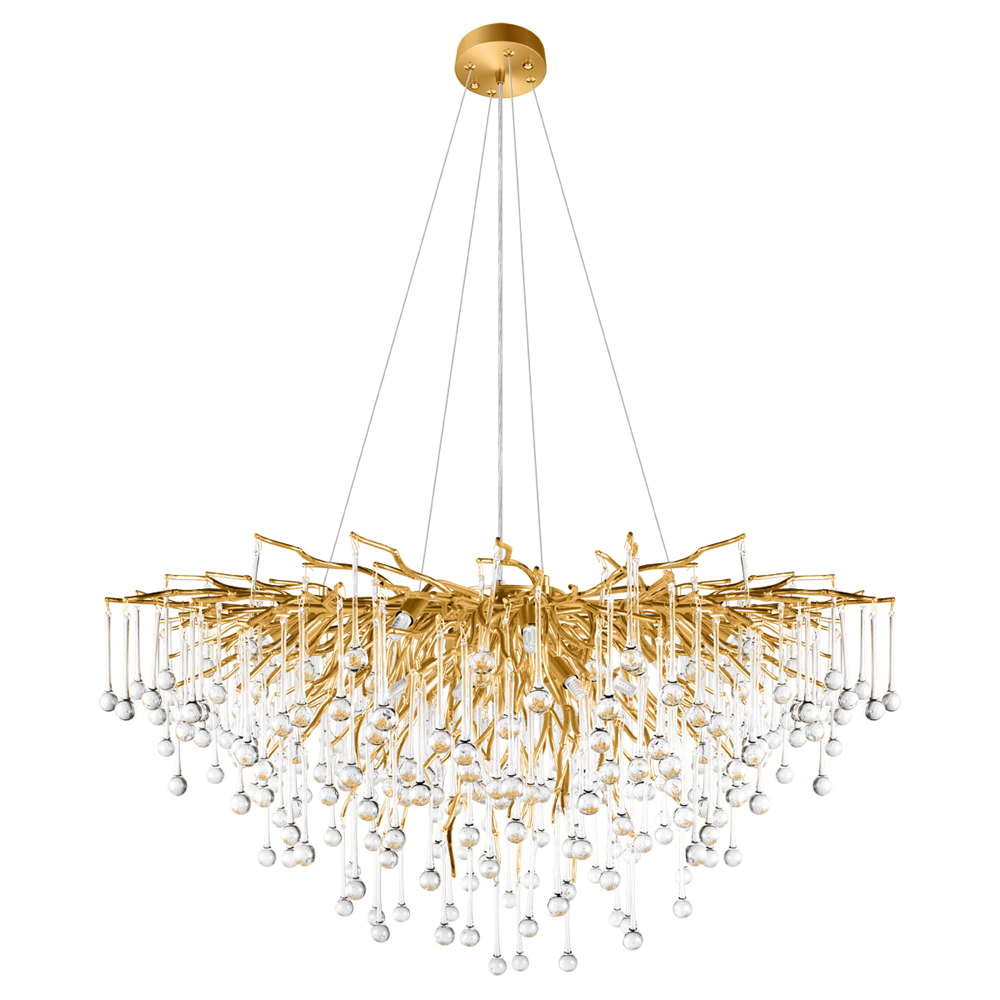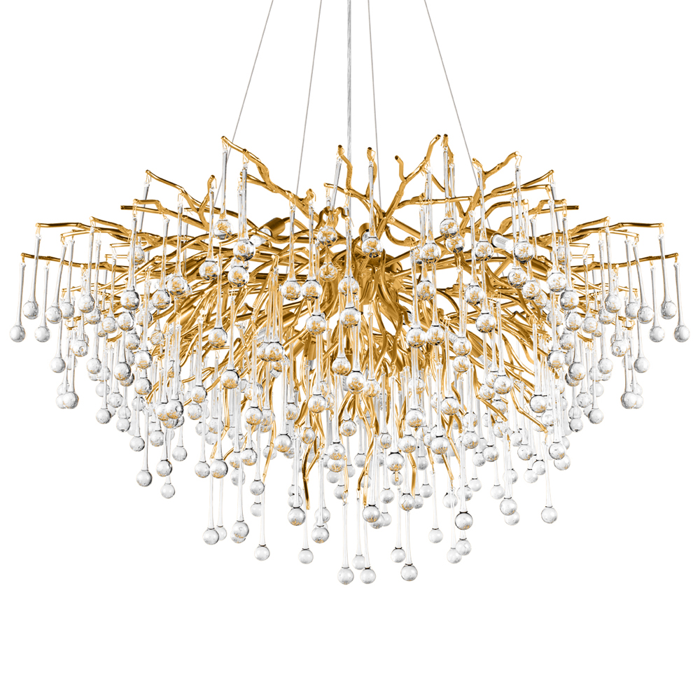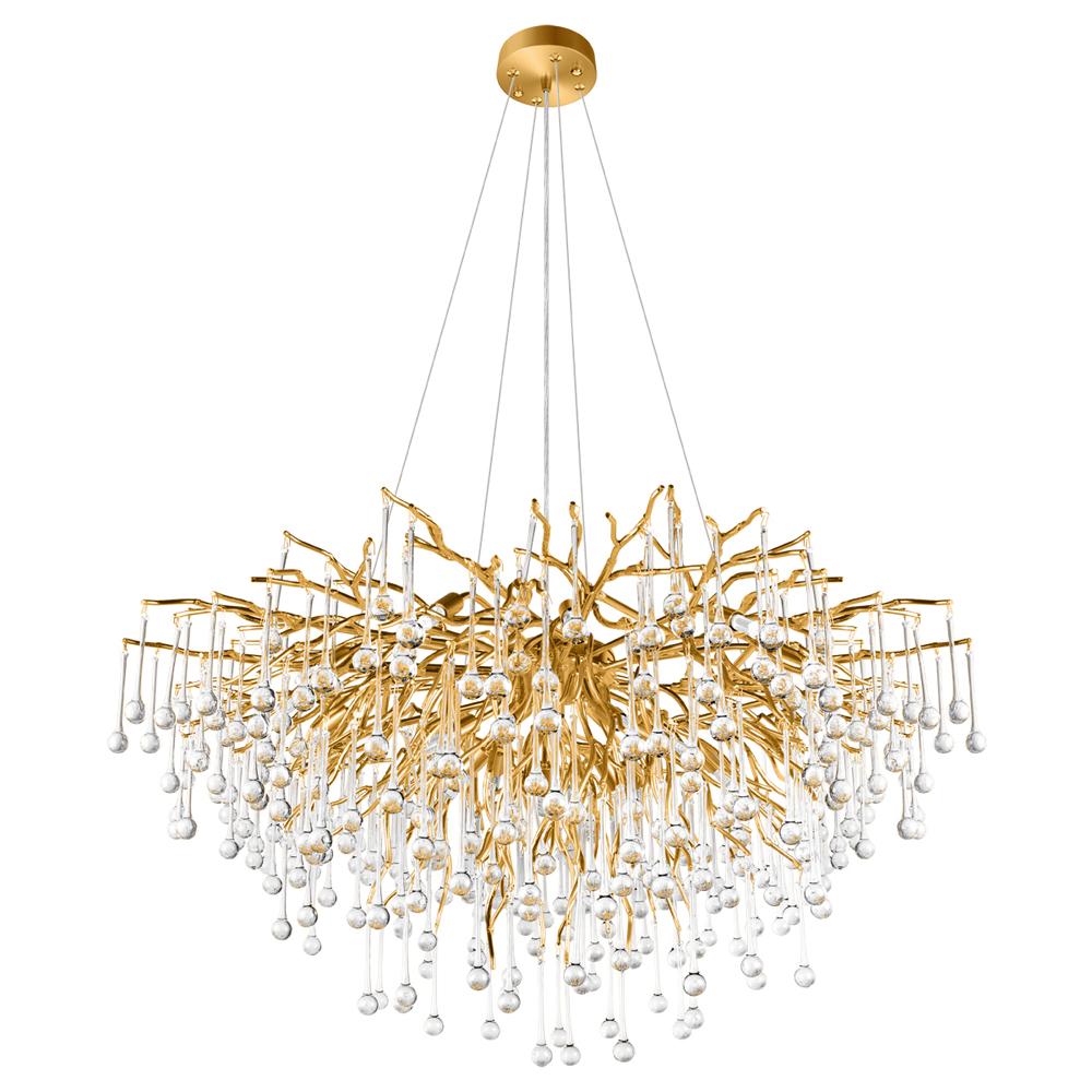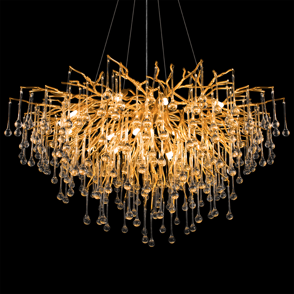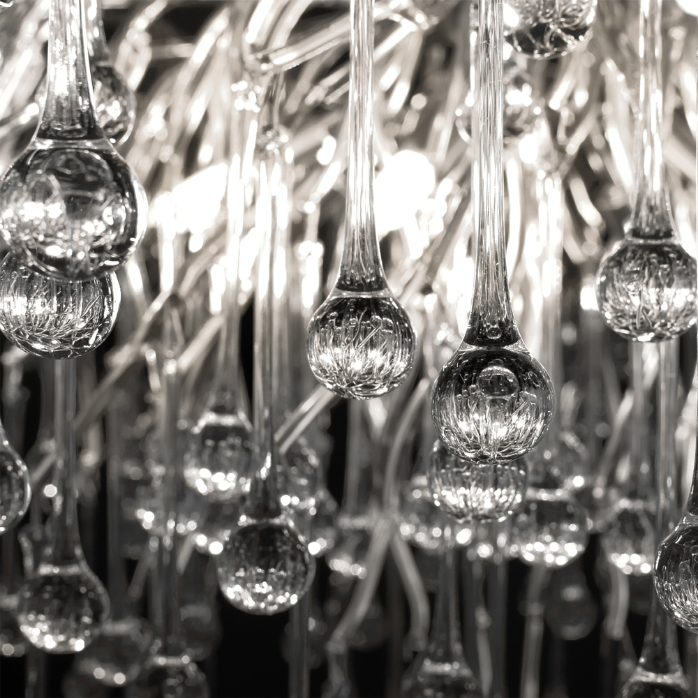 Люстра подвесная с прозрачными стеклянными подвесками в форме капель Диаметр 100 см Droplet Chandelier