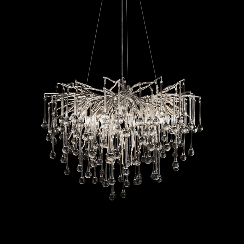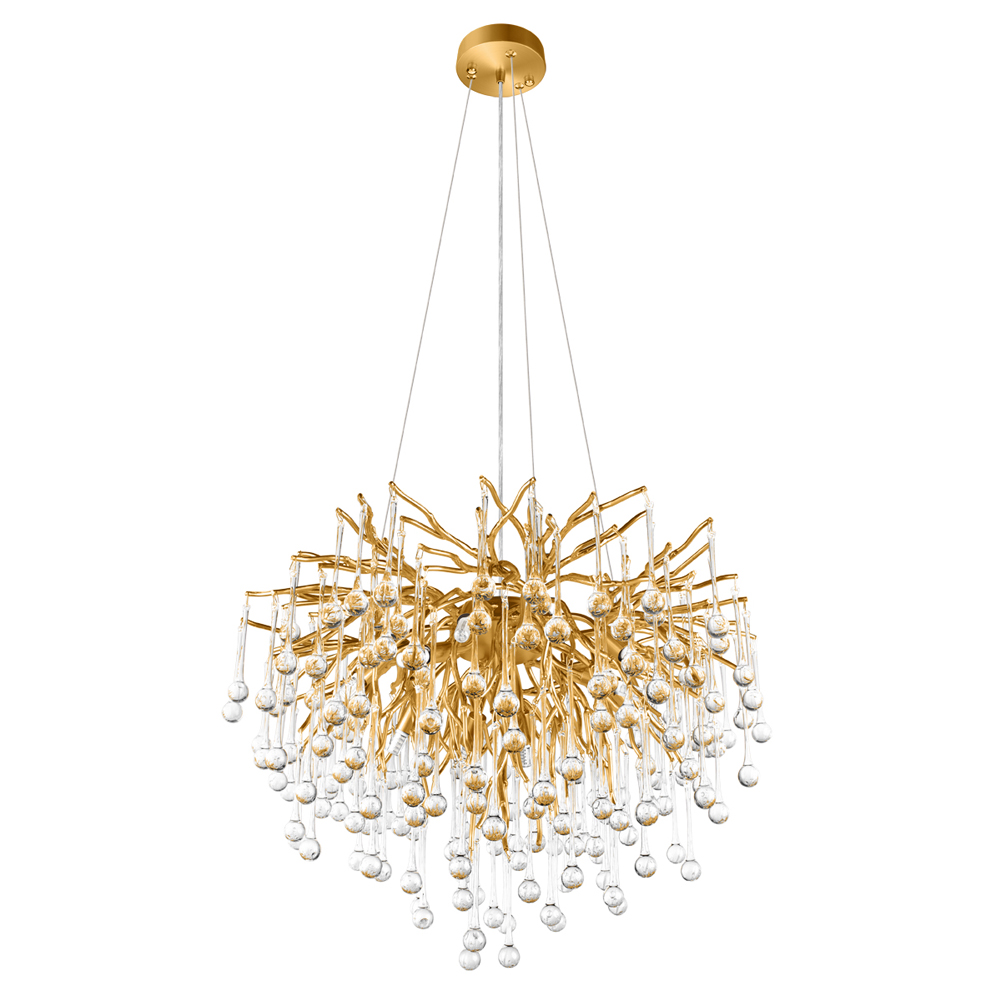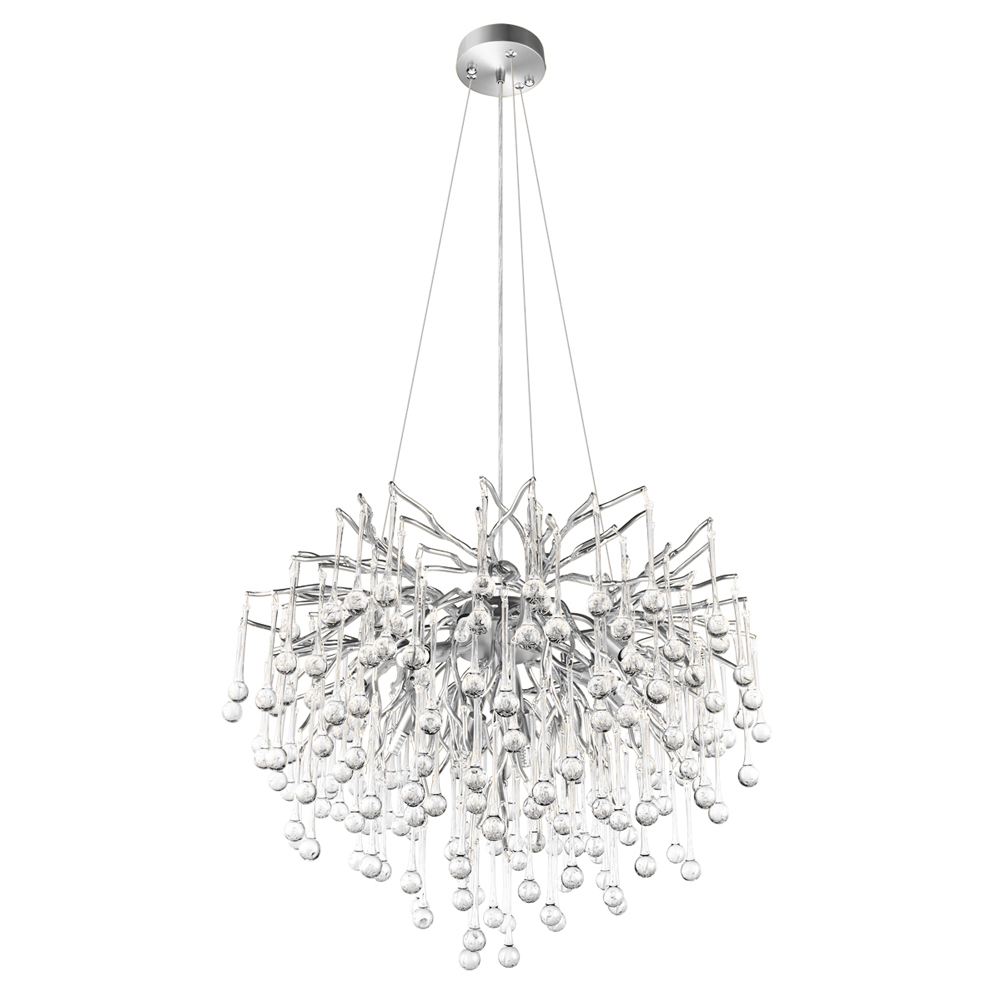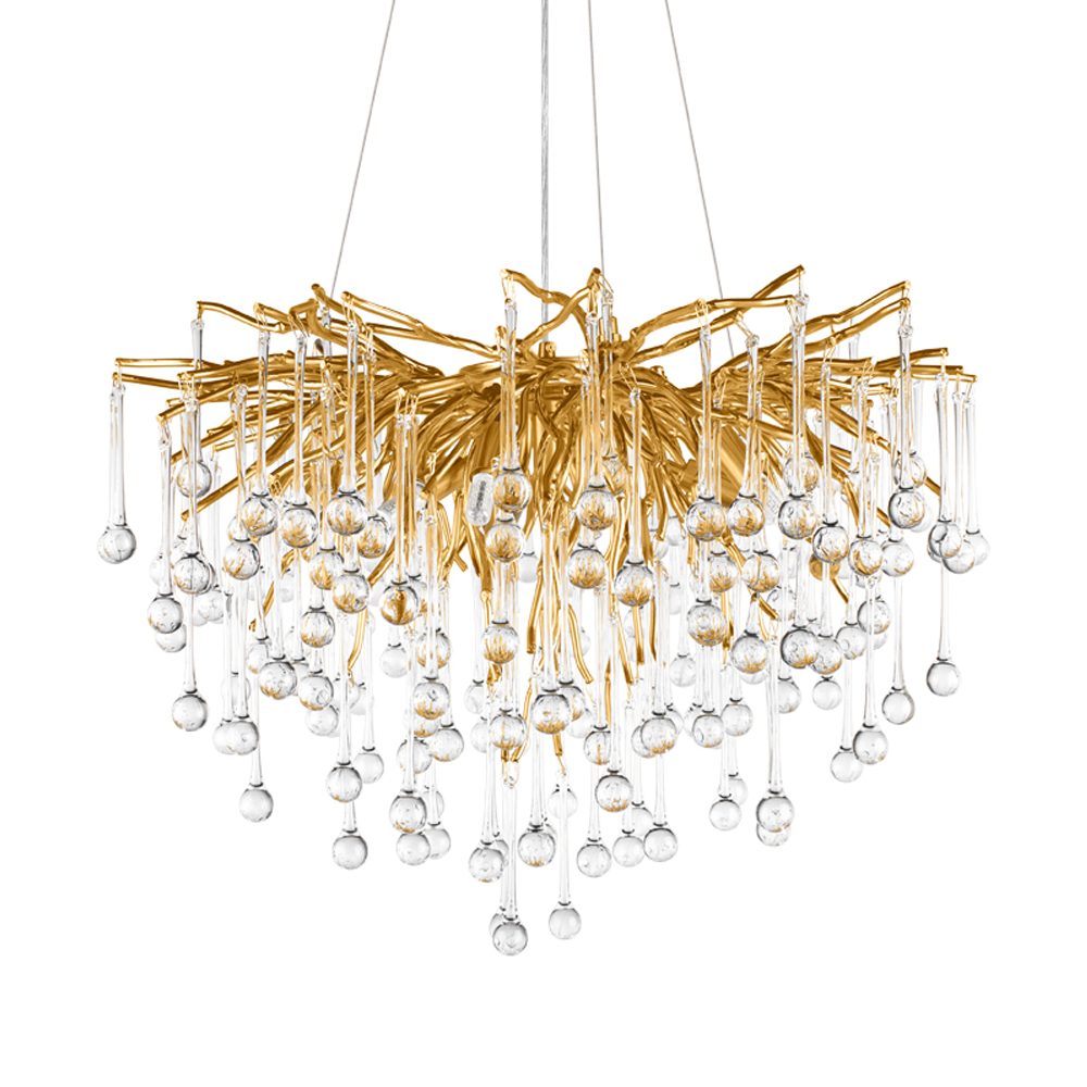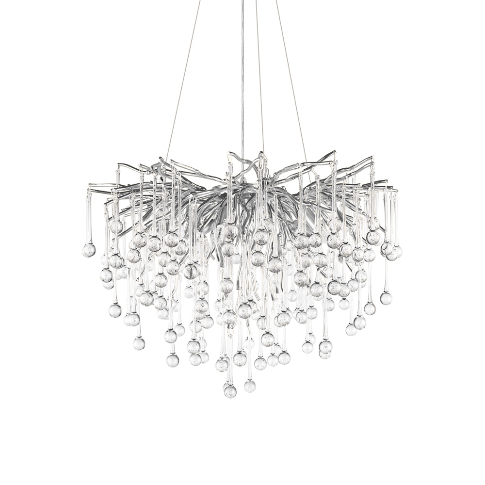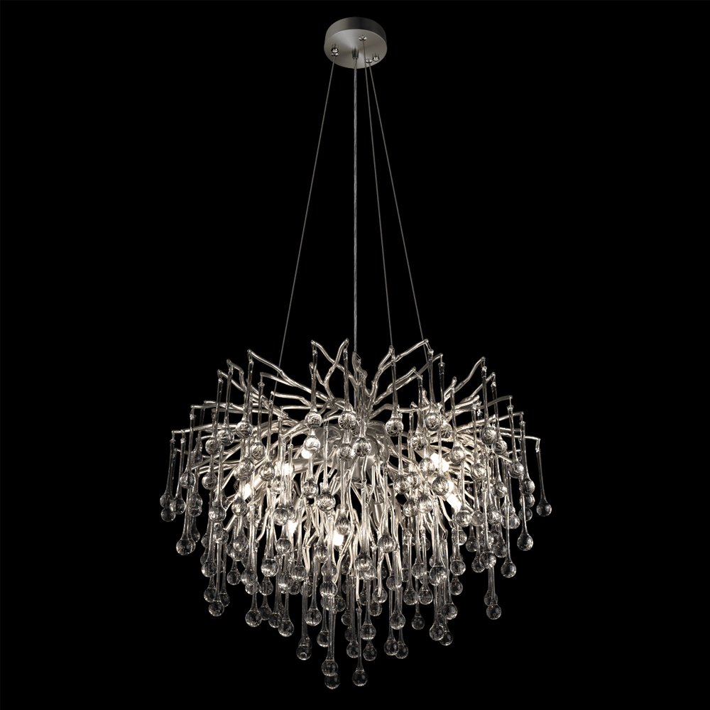 Люстра подвесная с прозрачными стеклянными подвесками в форме капель Диаметр 60 см Droplet Chandelier