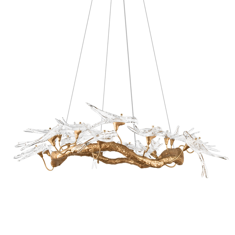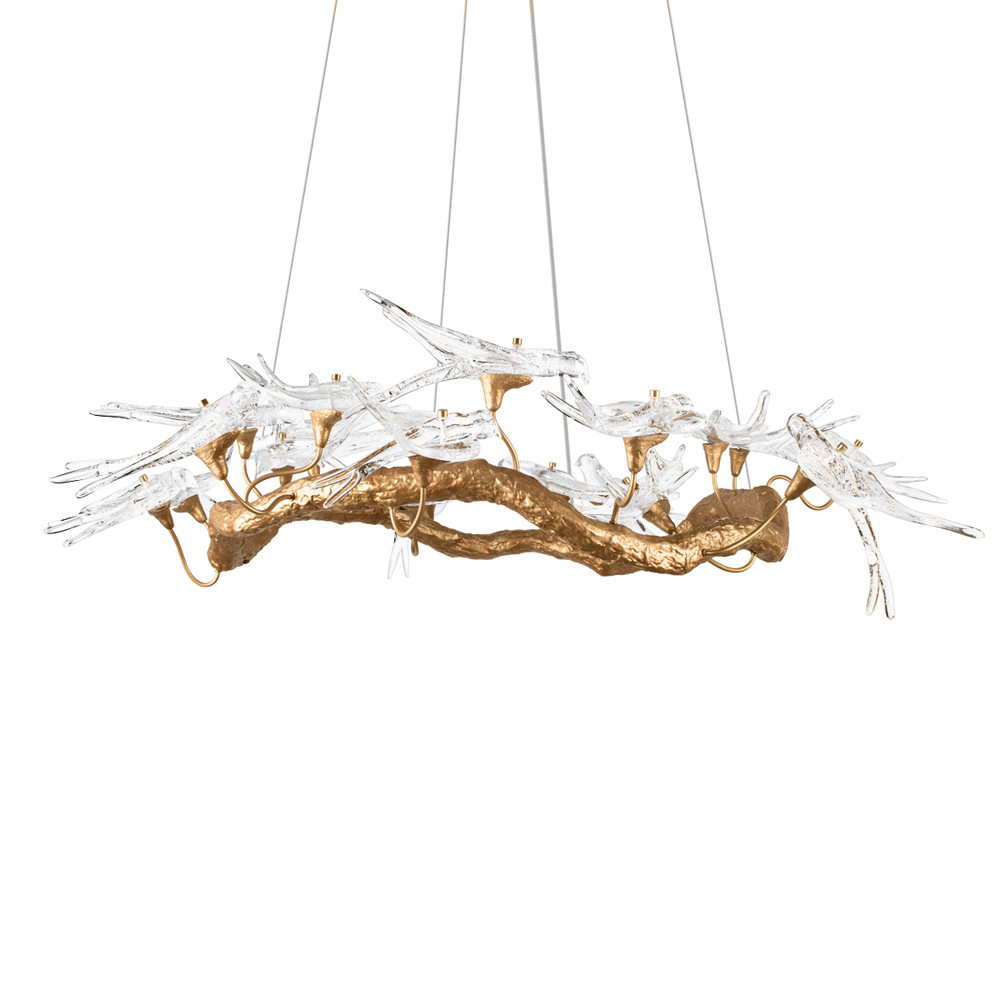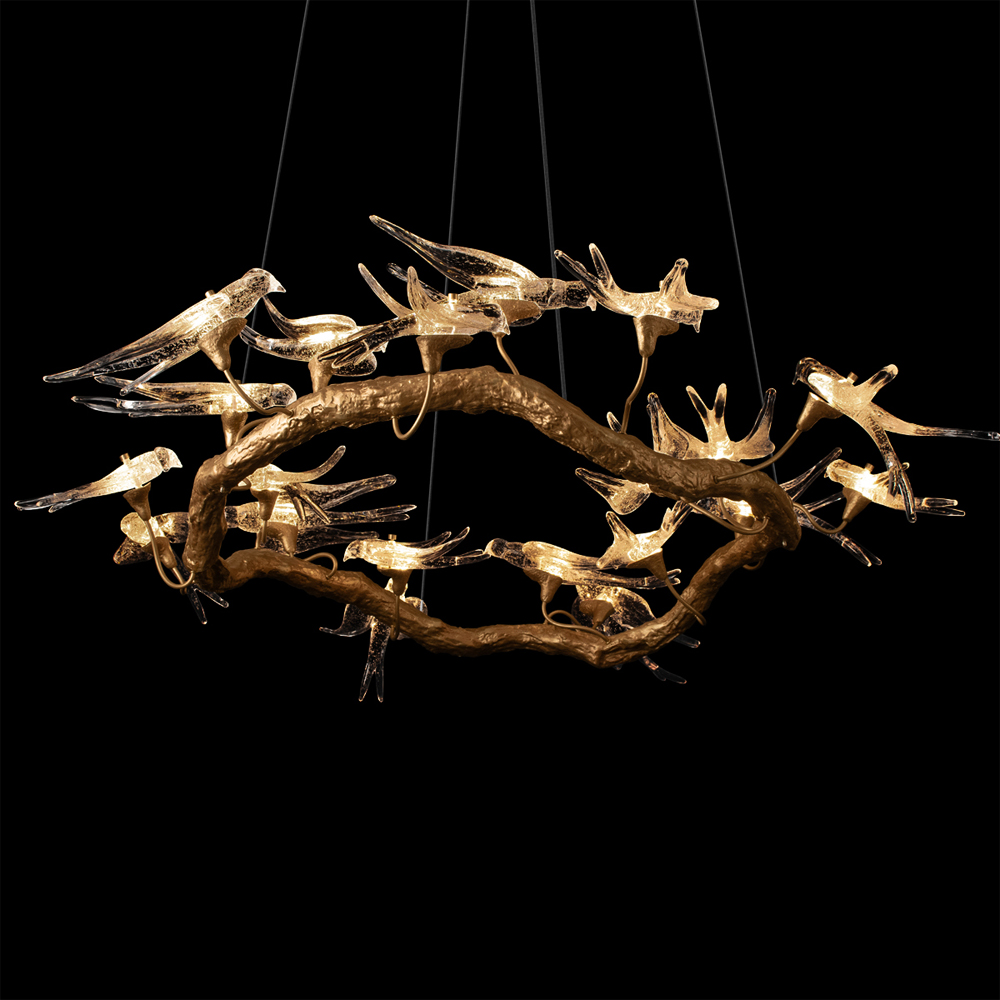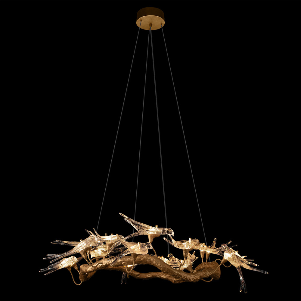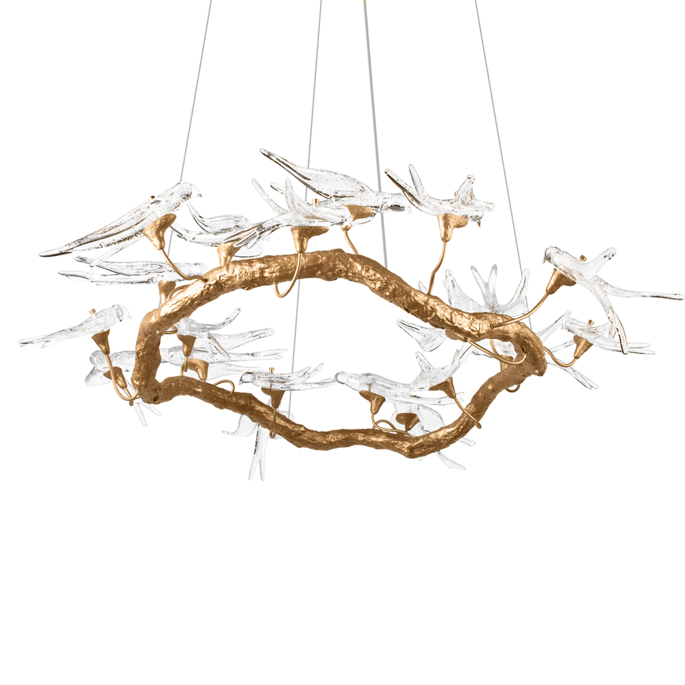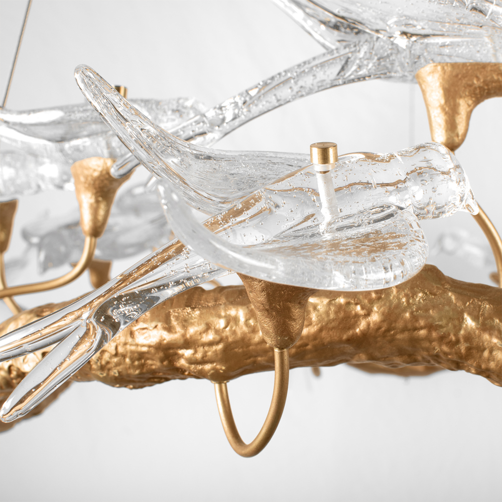 Люстра подвесная с прозрачными стеклянными птичками на ветвях Диаметр 100 см Serip Voa