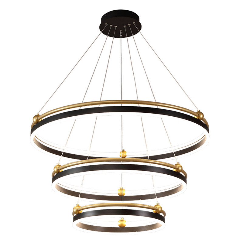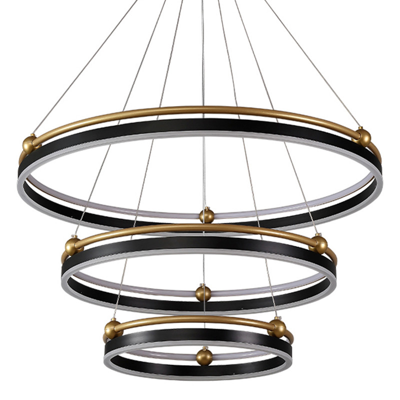 Люстра подвесная с тремя кольцами черного и золотого цвета Ring Horizontal