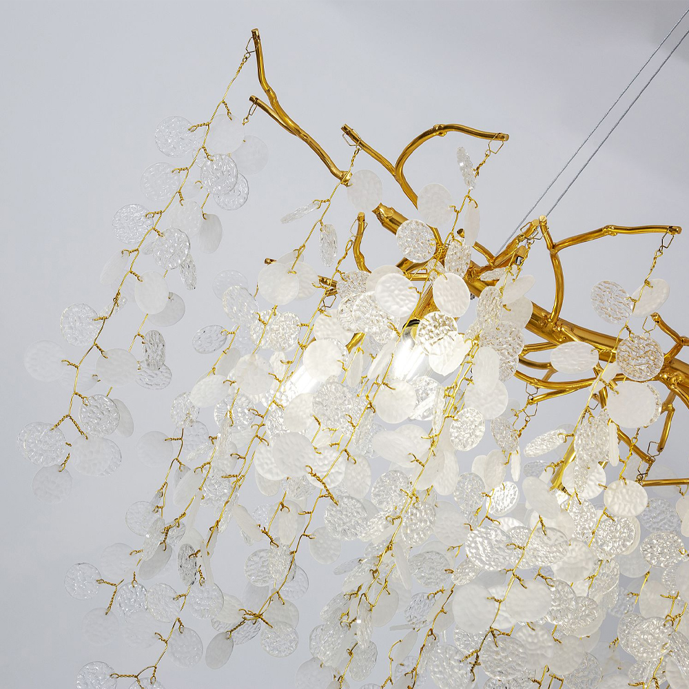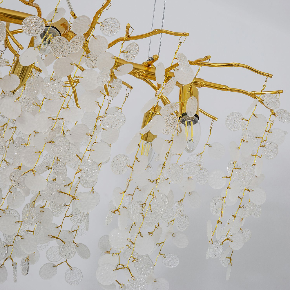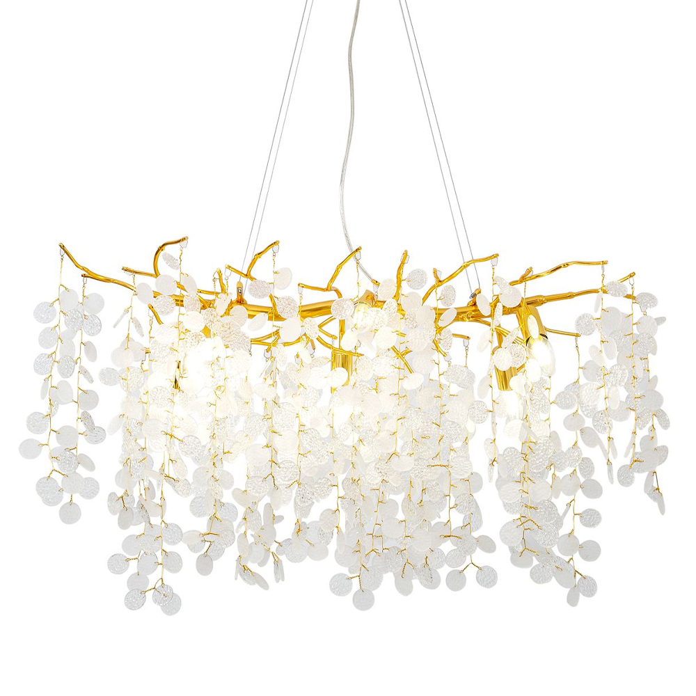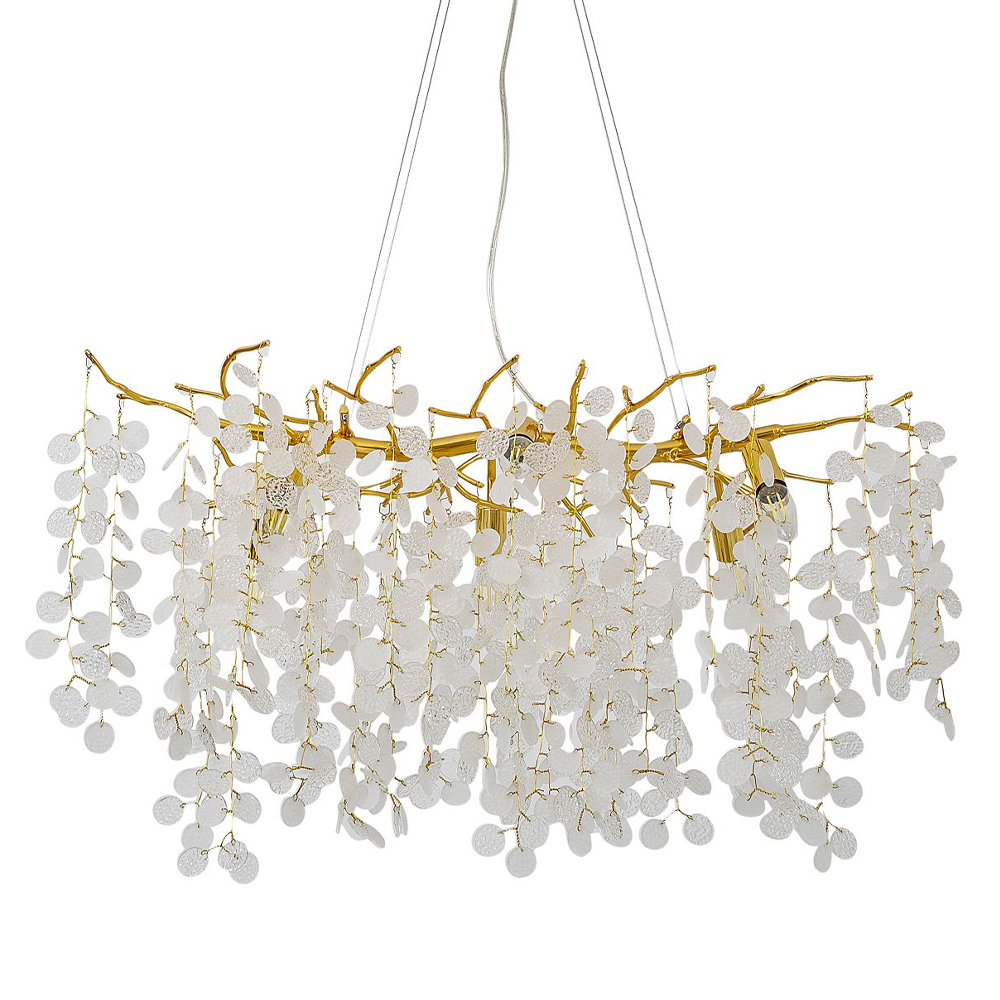 Люстра подвесная с золотистыми ветками и стеклянными подвесками в виде листьев Длина 80 см FAIRYTREE Light