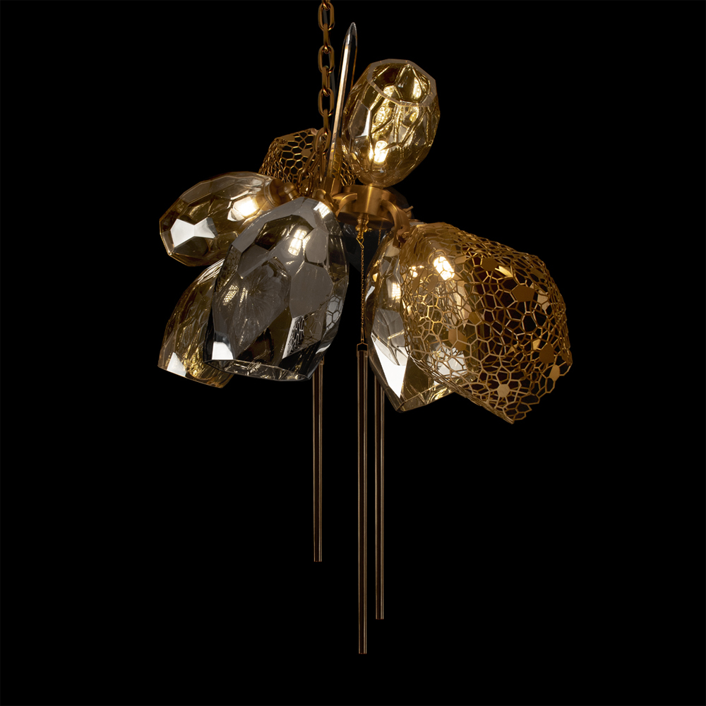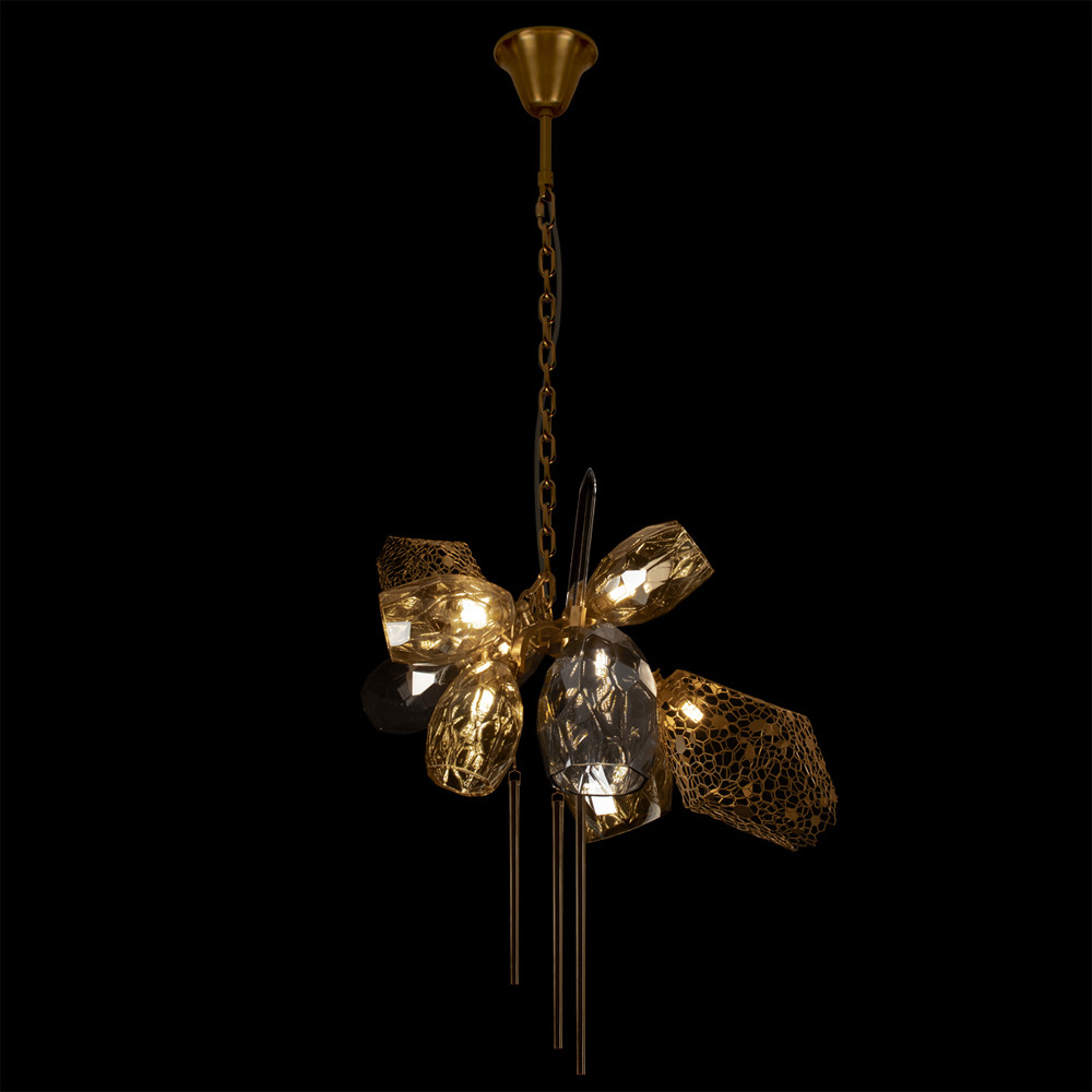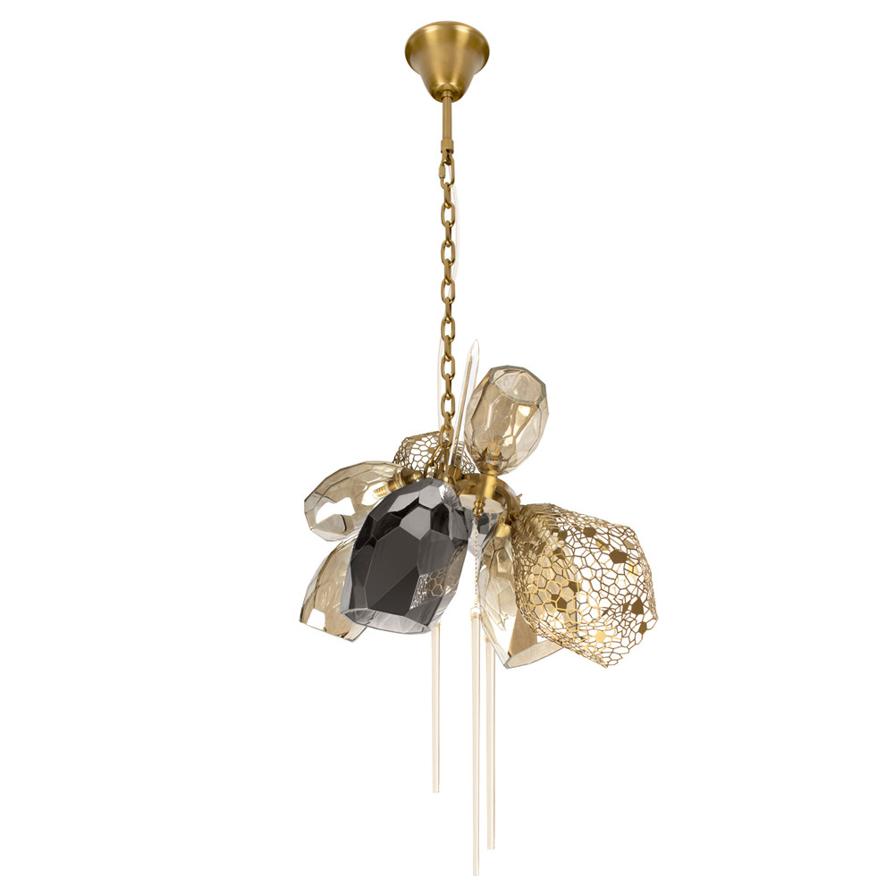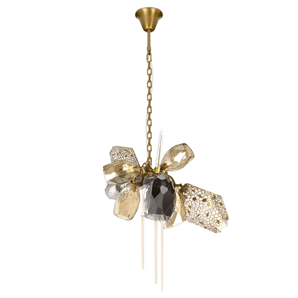 Люстра подвесная со стеклянными плафонами из дымчатого и золотистого с тремя вертикальными подвесками Gilded Mirage