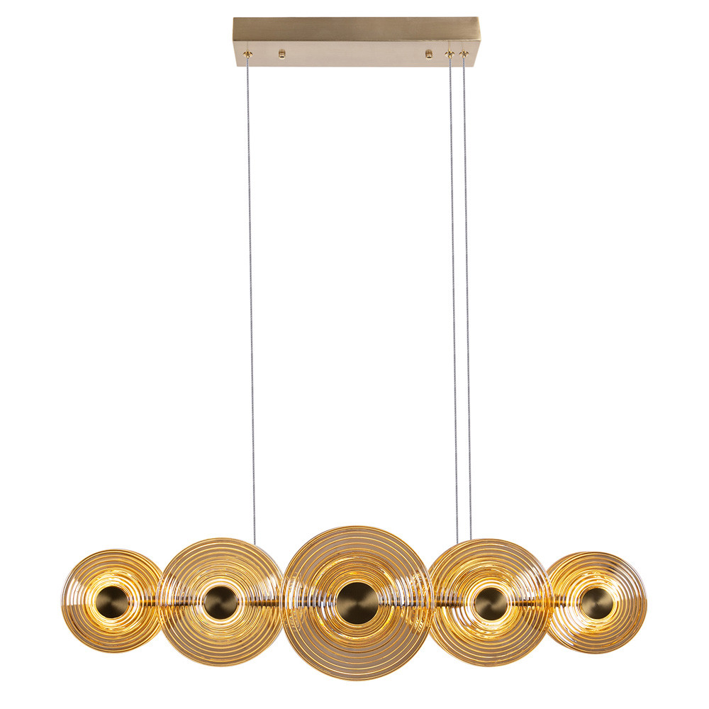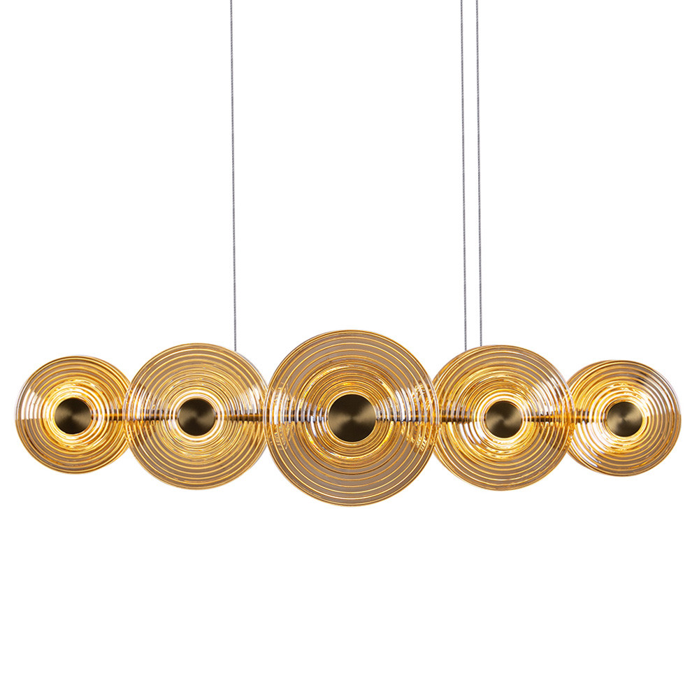 Люстра подвесная светодиодная со стеклянными плафонами янтарного цвета в форме дисков Savio Glass Disc