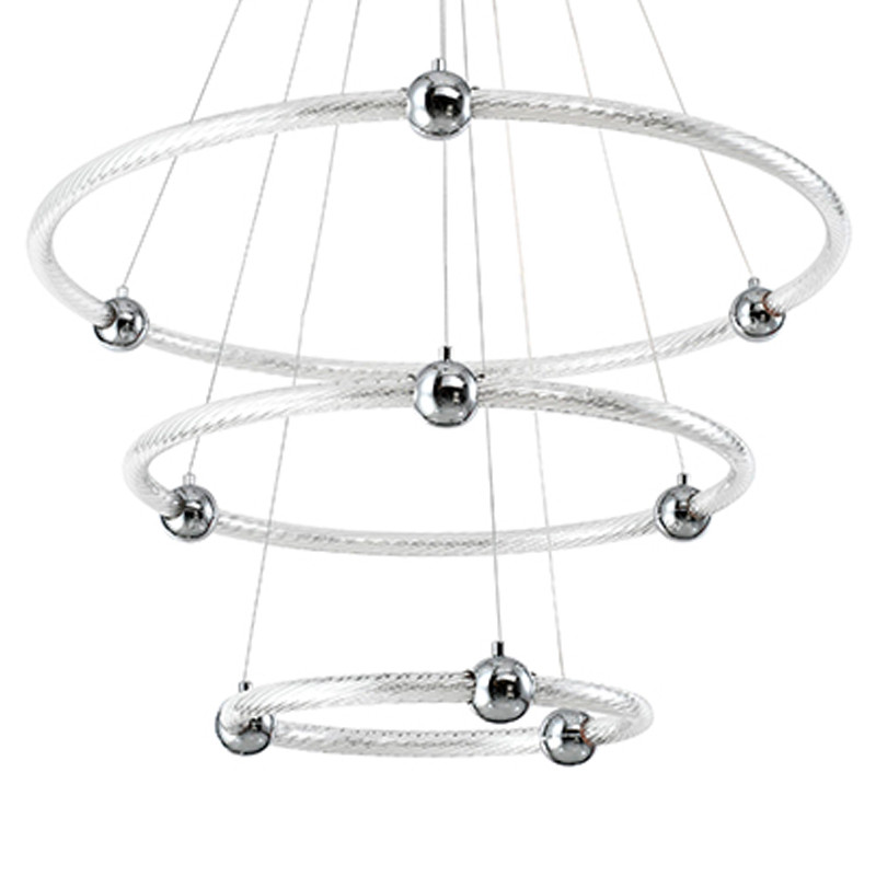 Люстра подвесная трехъярусная c плафонами в виде колец Lighting Rings Silver