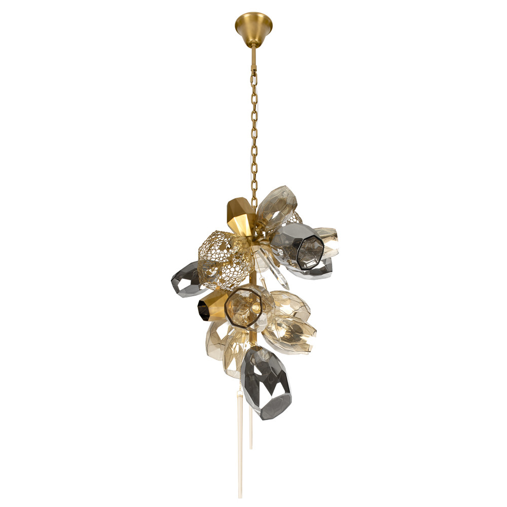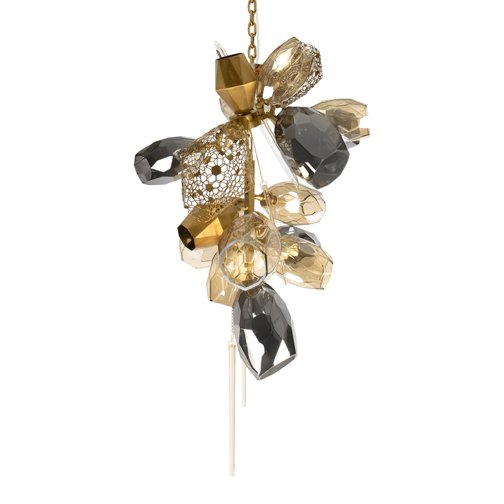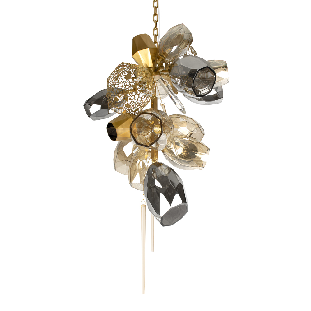 Люстра подвесная вытянутой формы с плафонами из стекла и металла с тремя вертикальными подвесками Gilded Mirage