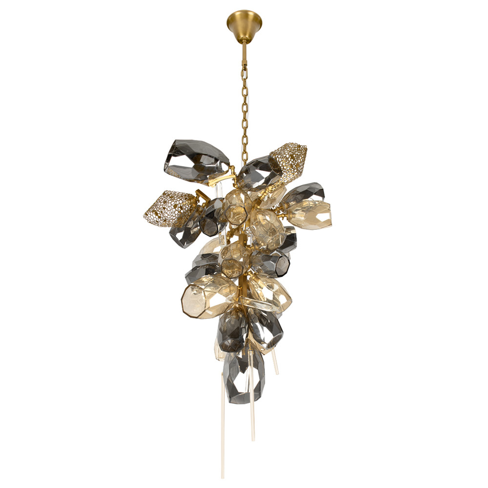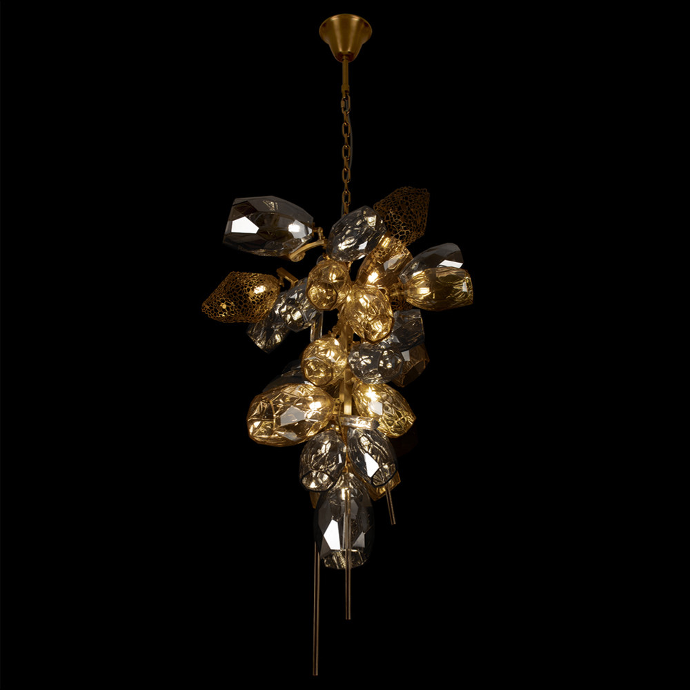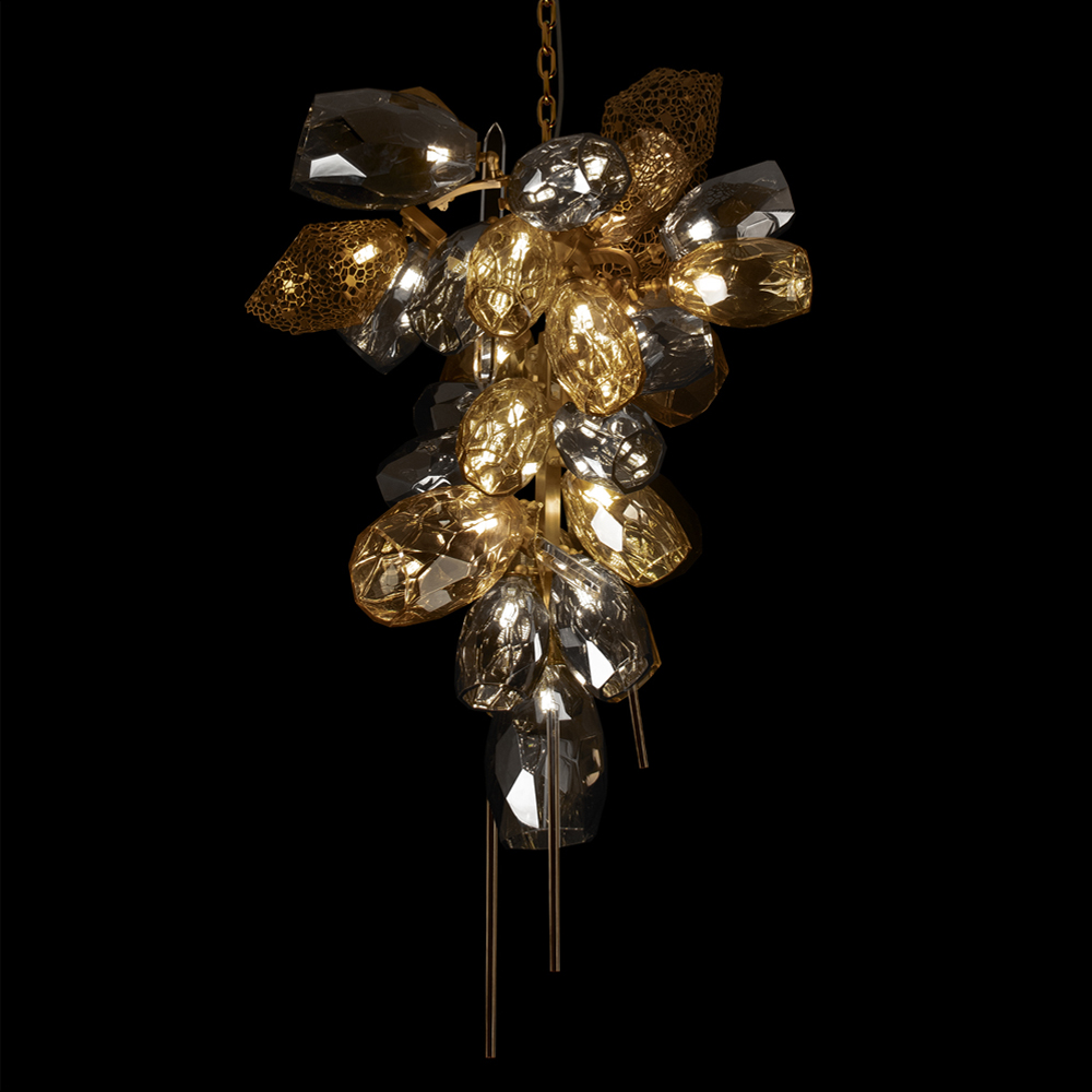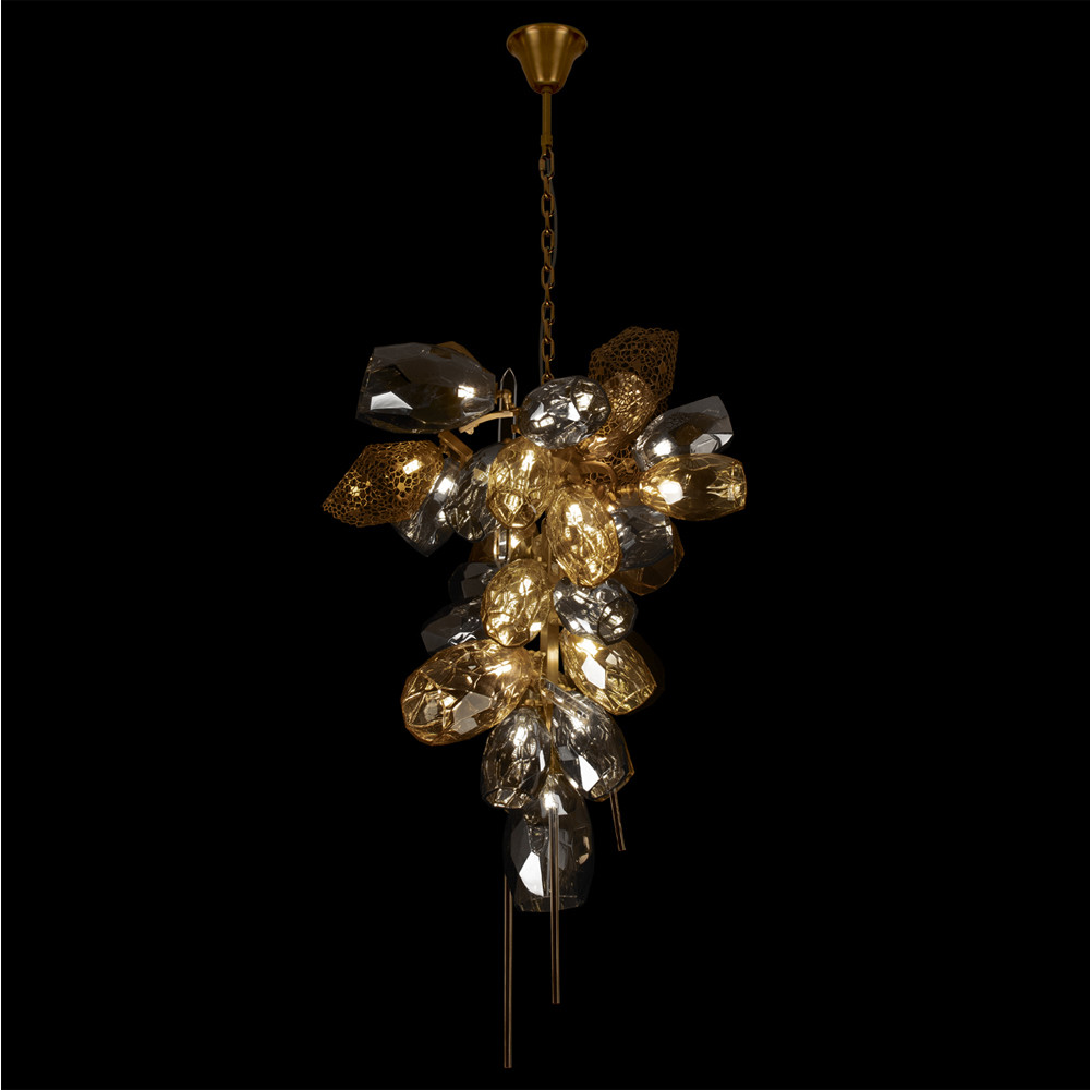 Люстра подвесная вытянутой формы с плафонами из стекла и металла с двумя вертикальными подвесками Gilded Mirage