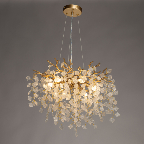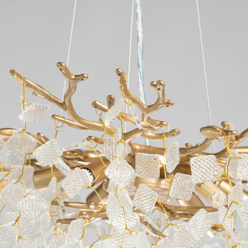 Люстра подвесная золотого цвета с декоративными ветвями и прозрачными рельефными подвесками FAIRYTREE Light