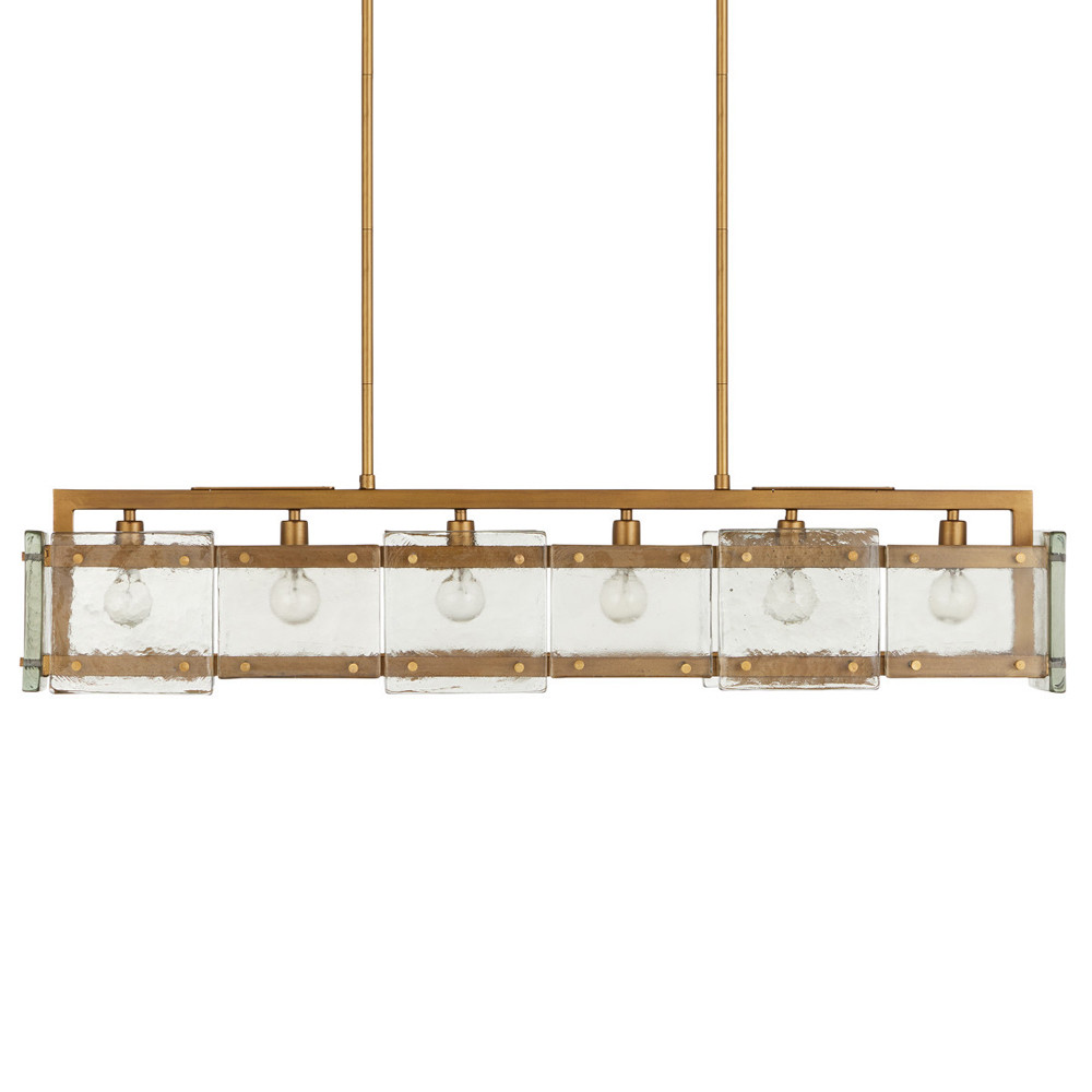 Люстра прямоугольная из толстого литого стекла Cast Glass
