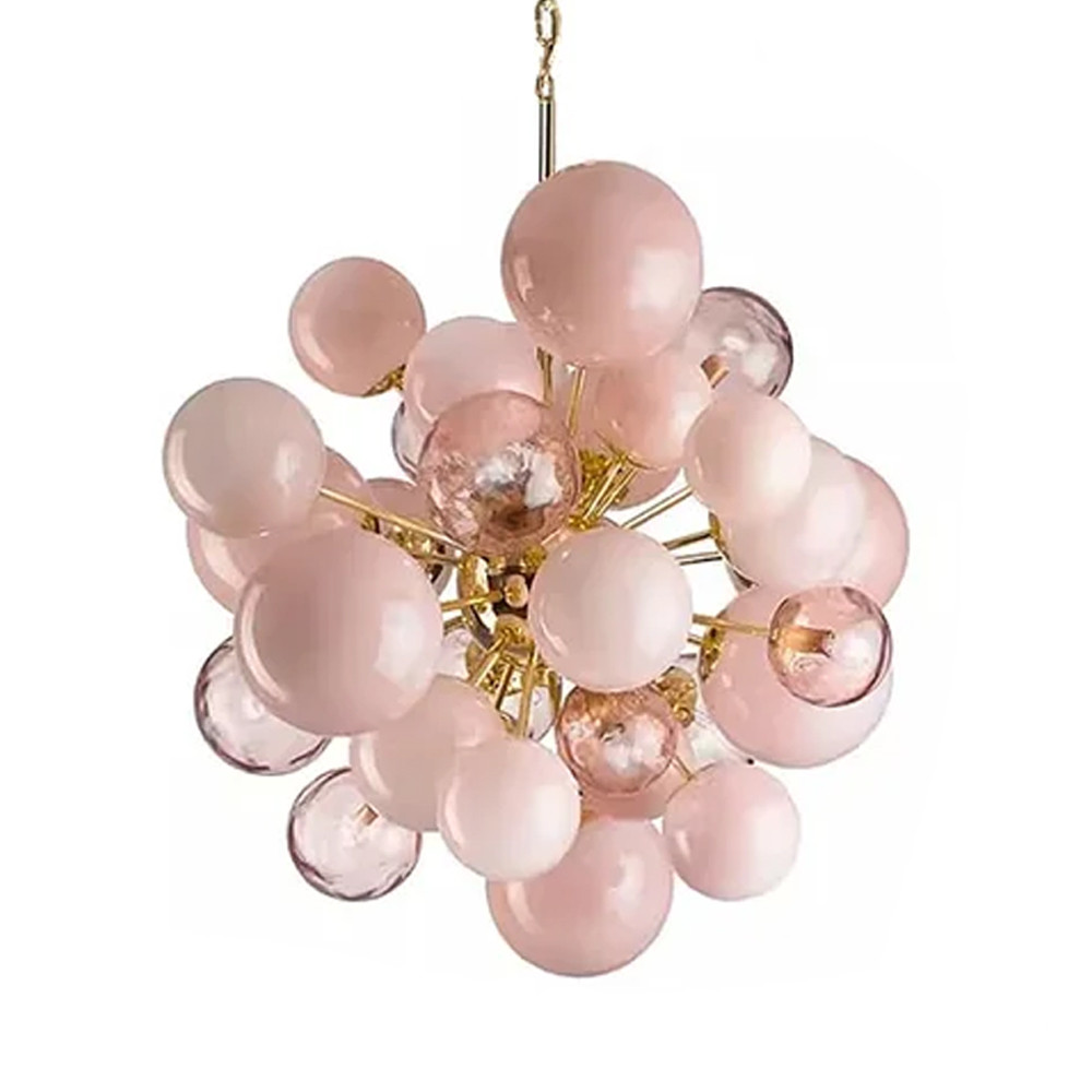 Люстра розовые шары на золотом каркасе Pink Light Bubbles