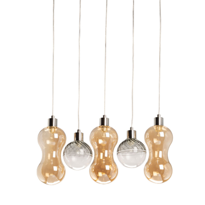 Люстра с 3-мя плафонами волнообразной формы цвета янтарь и 2-мя прозрачными шарообразными плафонами Lucid Rain