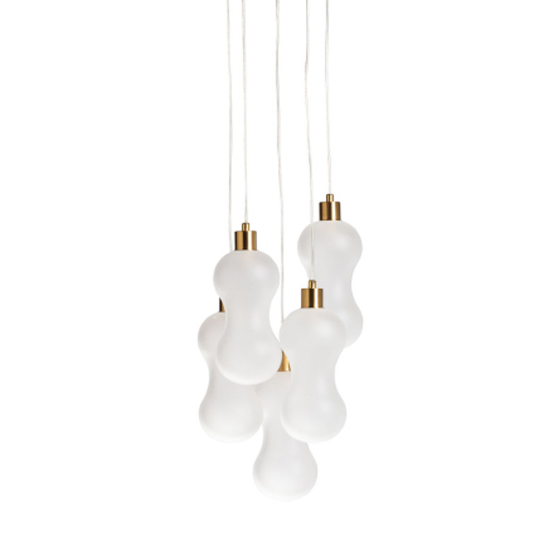 Люстра с 5-ю матовыми белыми стеклянными плафонами волнообразной формы Lucid Rain