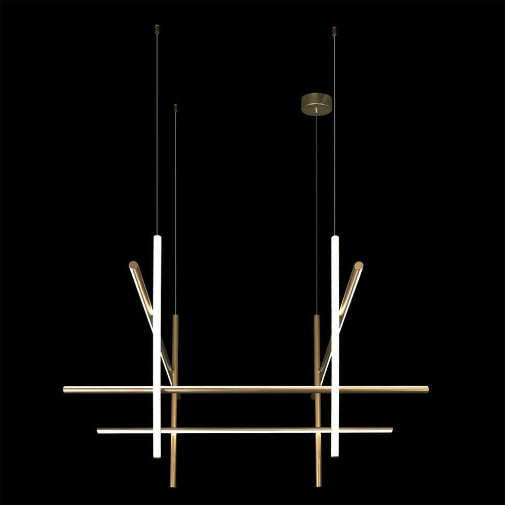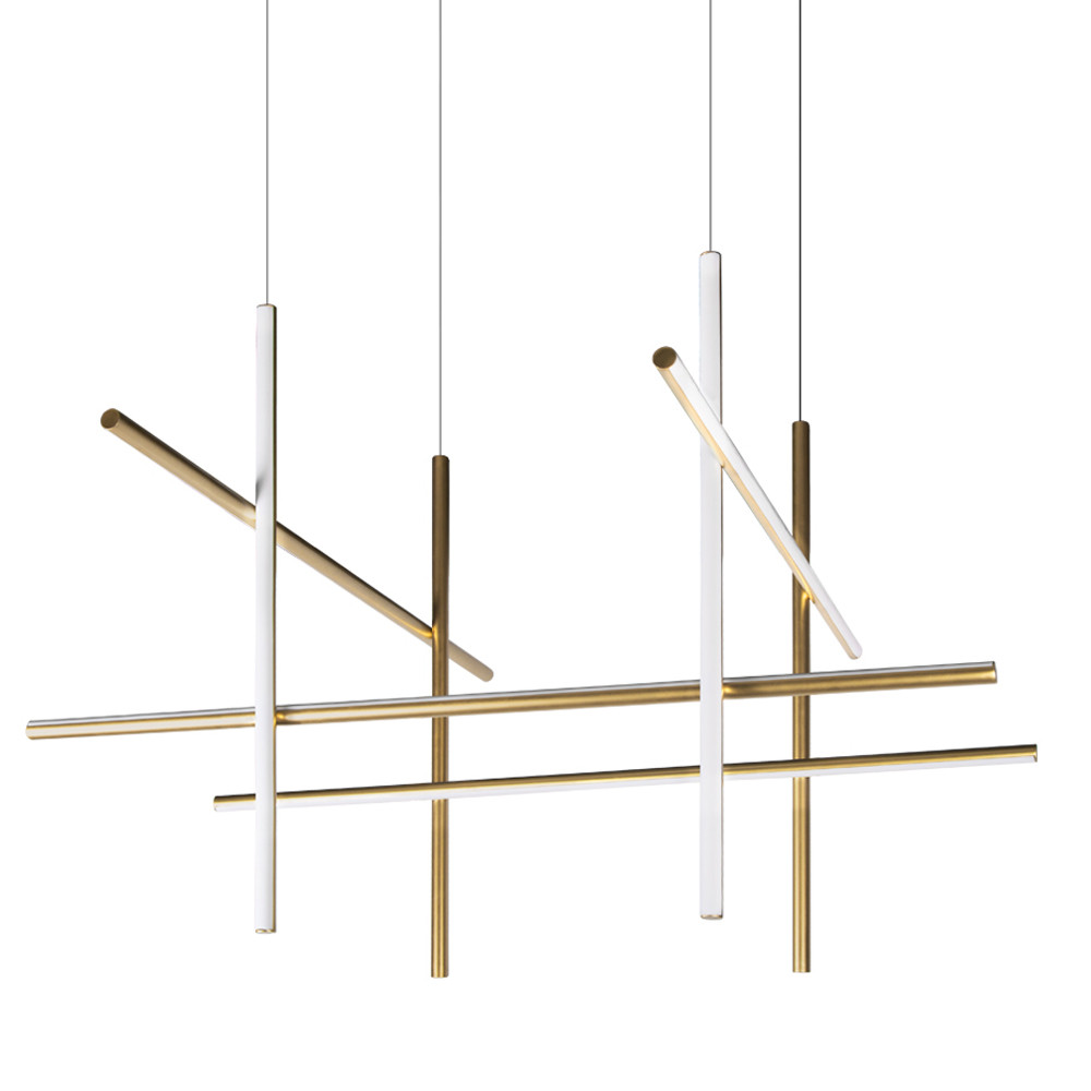 Люстра с 8-ю пересекающимися цилиндрическими плафонами на тонких тросах Trumpet tube