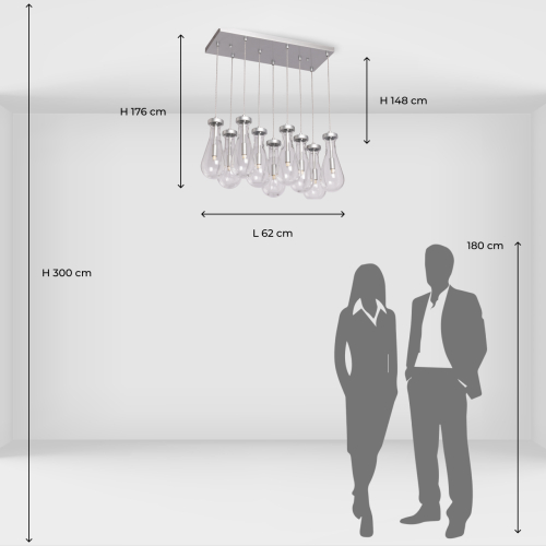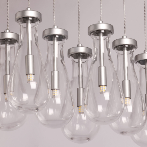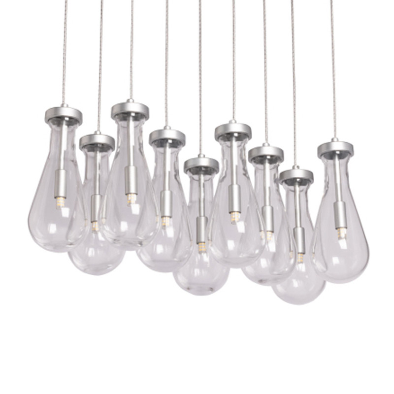 Люстра с 9-ю прозрачными плафонами из стекла в форме капли на прямоугольном потолочном основании цвета хром Lucid Rain