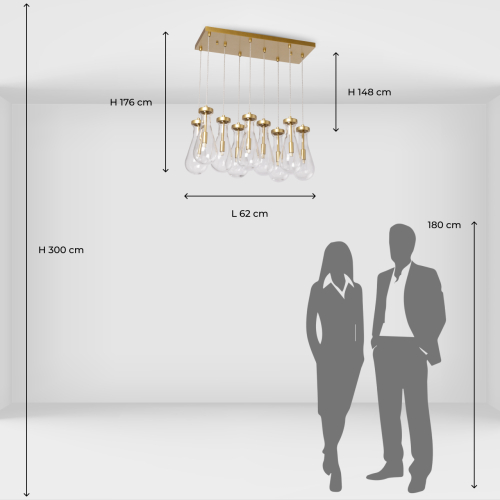 Люстра с 9-ю прозрачными стеклянными плафонами в форме капли Lucid Rain