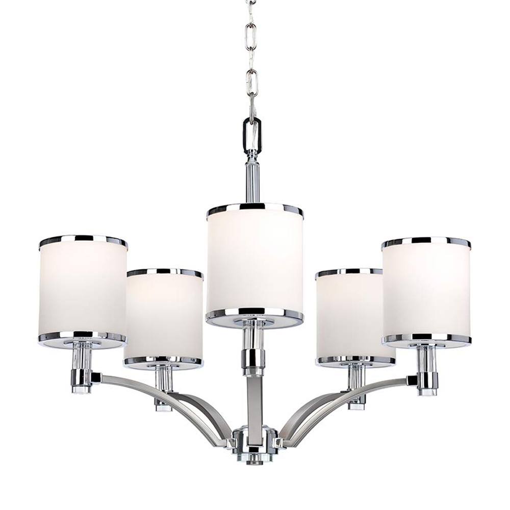 Люстра с белыми стеклянными плафонами в форме цилиндра Feiss Никель Хром Белый Бежевый в Москве | Loft Concept