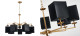 Каркас цвета античная латунь, плафоны из черной ткани, декор - имитация черного мрамора, каркас можно монтировать как вверх, так и вниз плафонами.