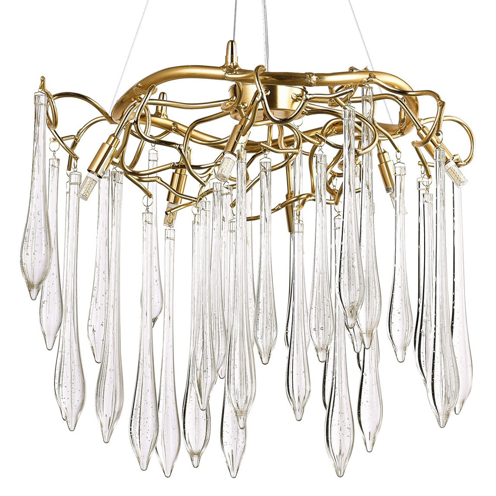 Люстра с хрустальными подвесками в виде капель Droplet Crystal Gold Chandelier 6