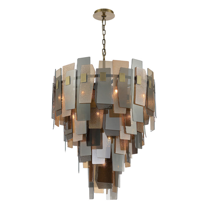 Люстра с многослойными стеклянными панелями янтарного и дымчатого цвета Textured Glass Chandelier