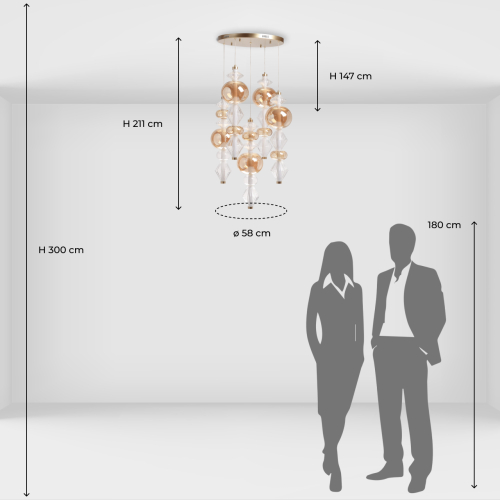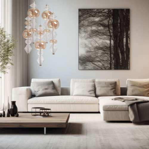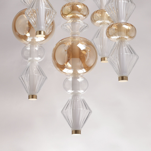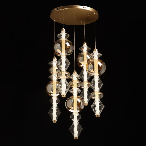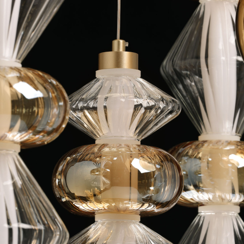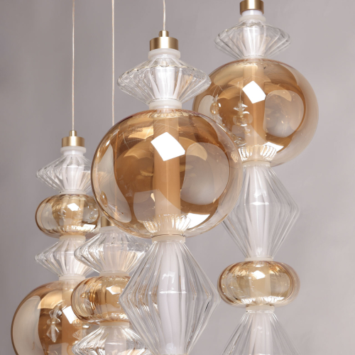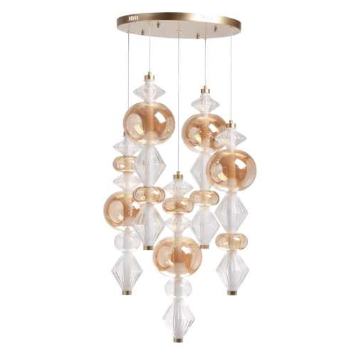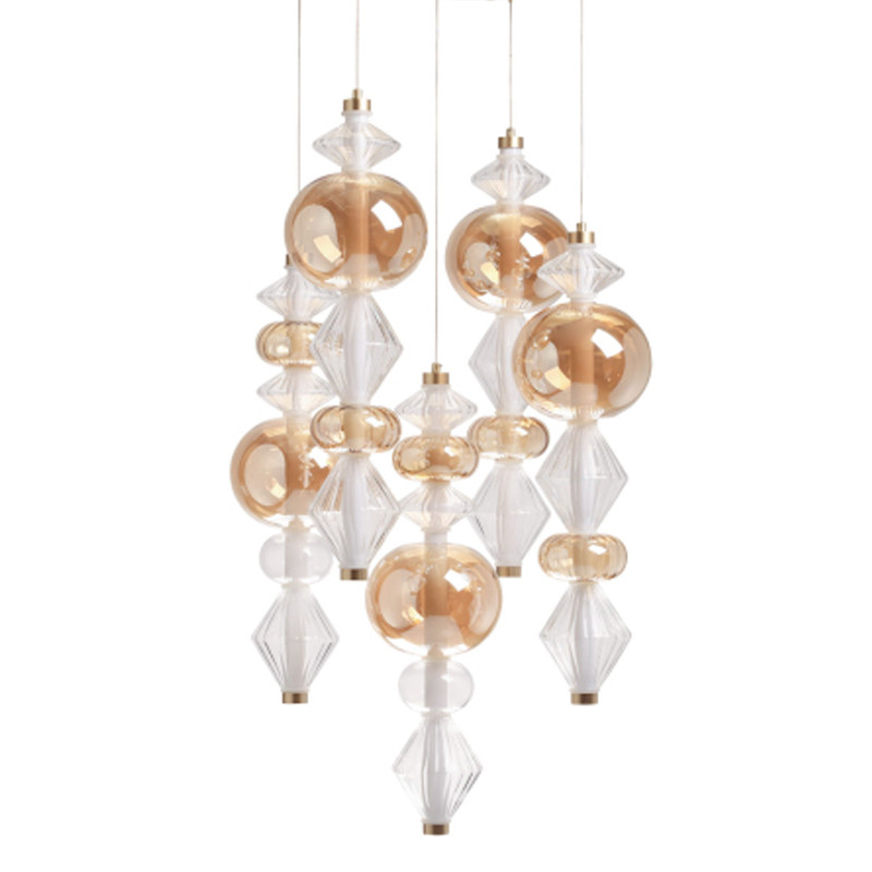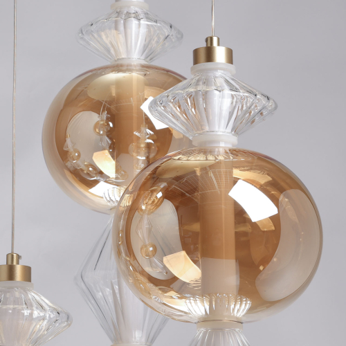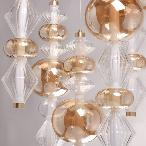 Люстра с плафонами из прозрачного и янтарного стекла в виде шаров и ромбов Gabriel Scott Luna