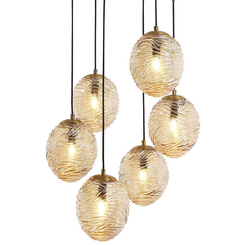 Люстра с плафонами янтарного цвета Perforated Glass 6 Ламп
