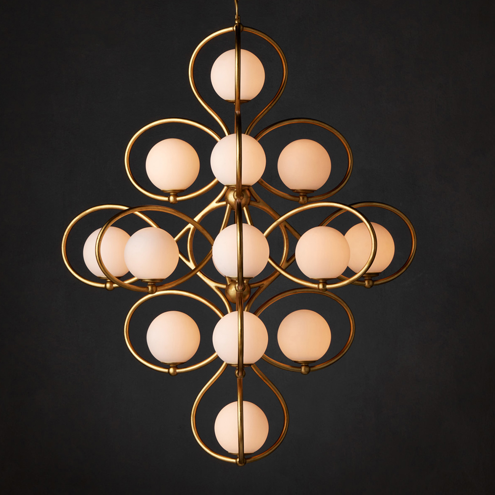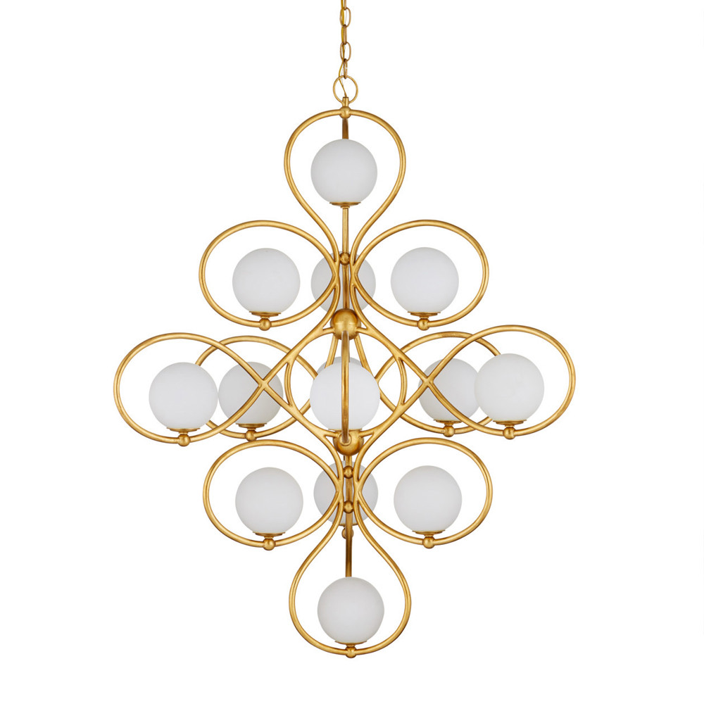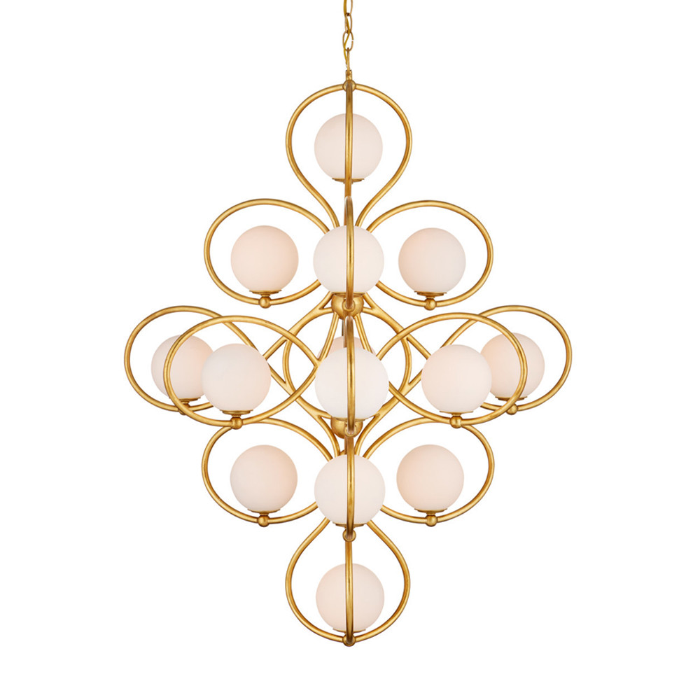 Золотая подвесная люстра Round Curl – Нежность и мягкое сияние молочных плафонов.