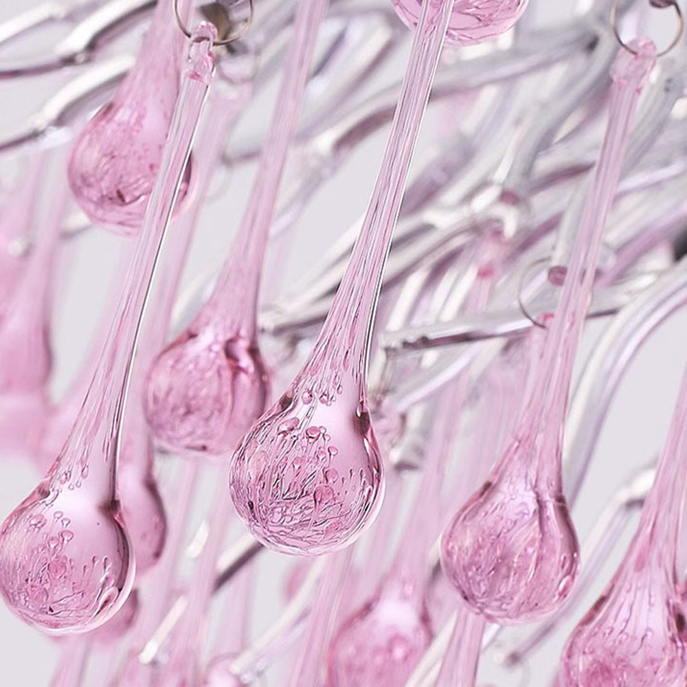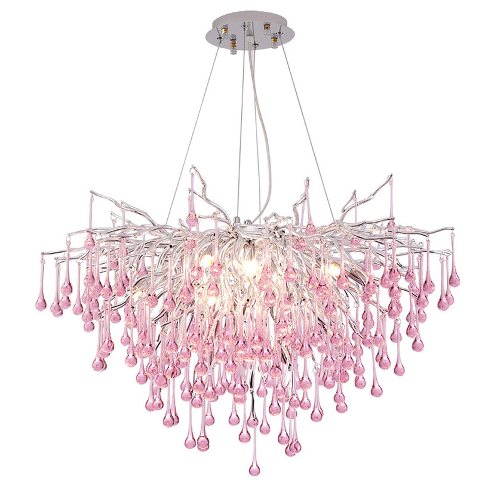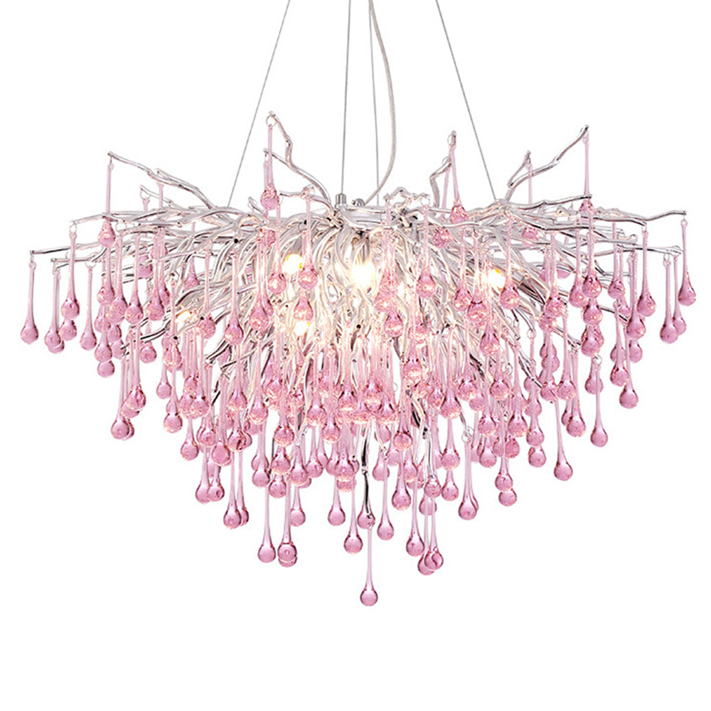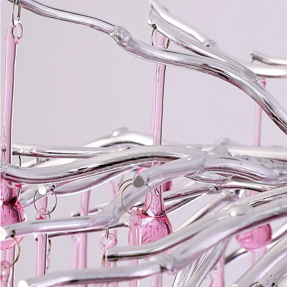 Люстра серебрянная с розовыми стеклянными подвесками в форме капель FAIRYTREE Light