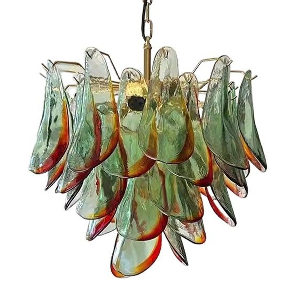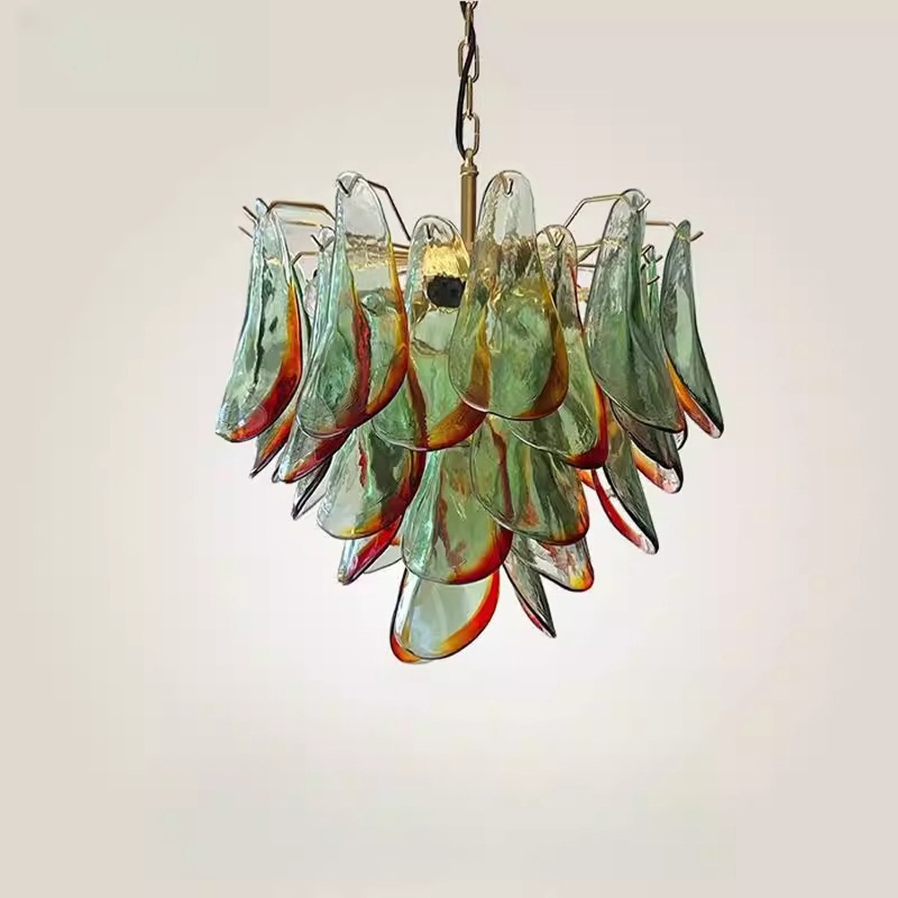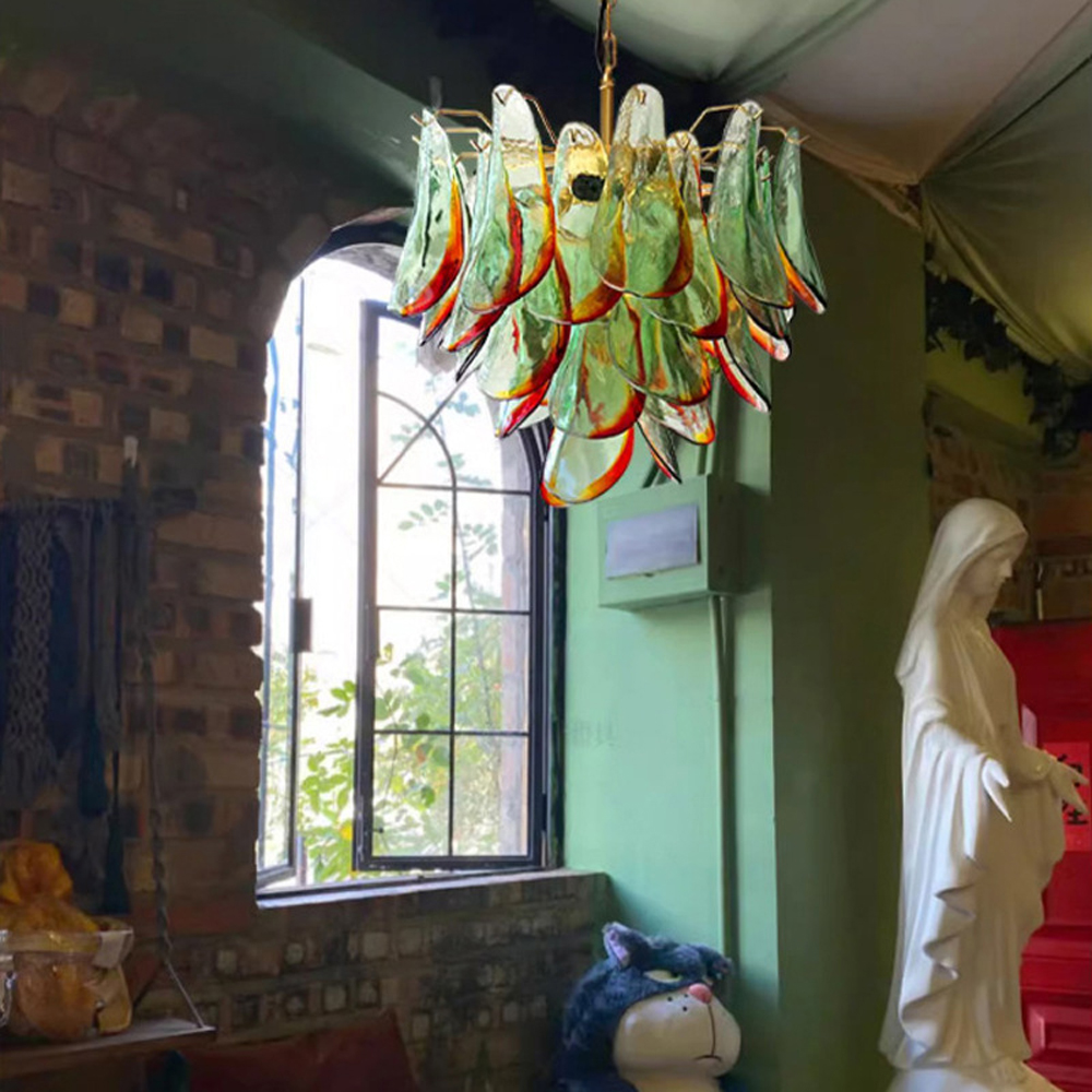 Люстра стеклянная с зелеными лепестками Green Leaf Fall