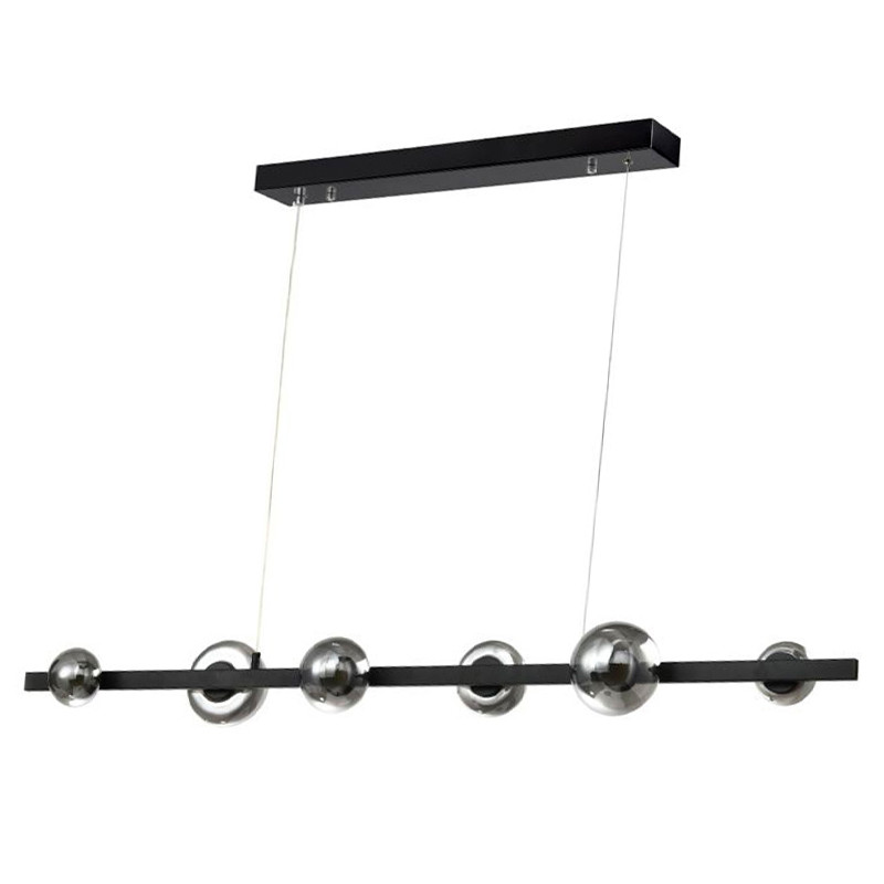 Люстра светодиодная линейная с 6-ю круглыми серыми плафонами Iona Chandelier Black