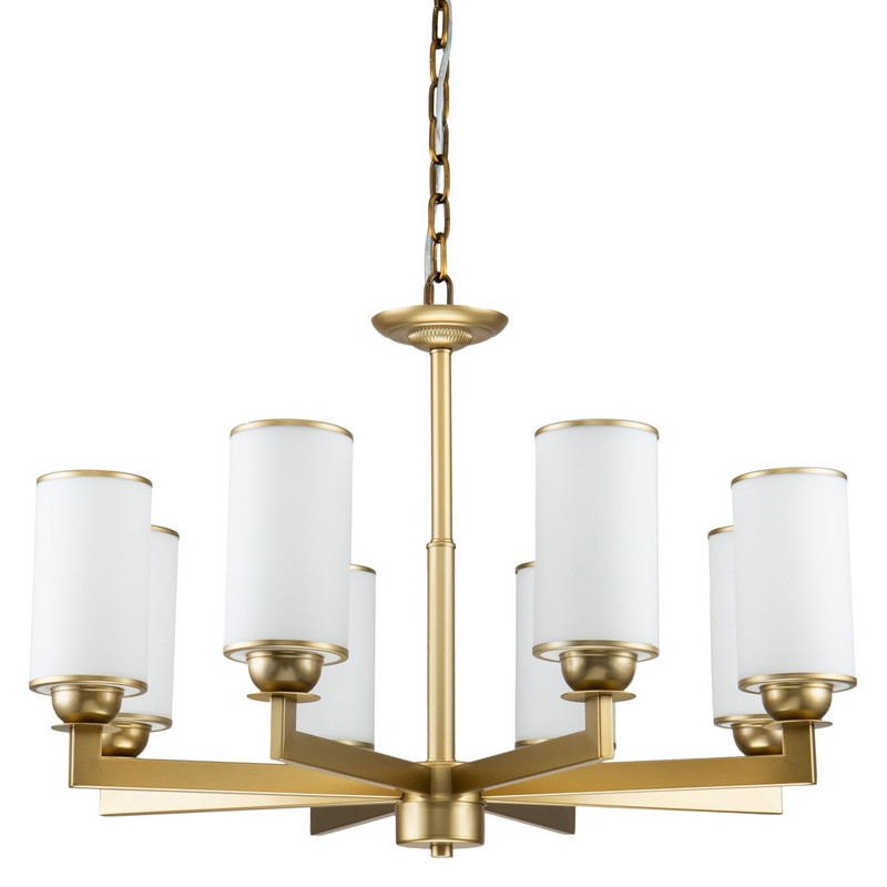 Каркас цвета латунь, плафоны из белого матового стекла.