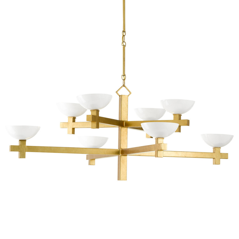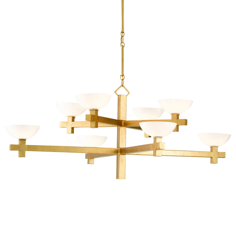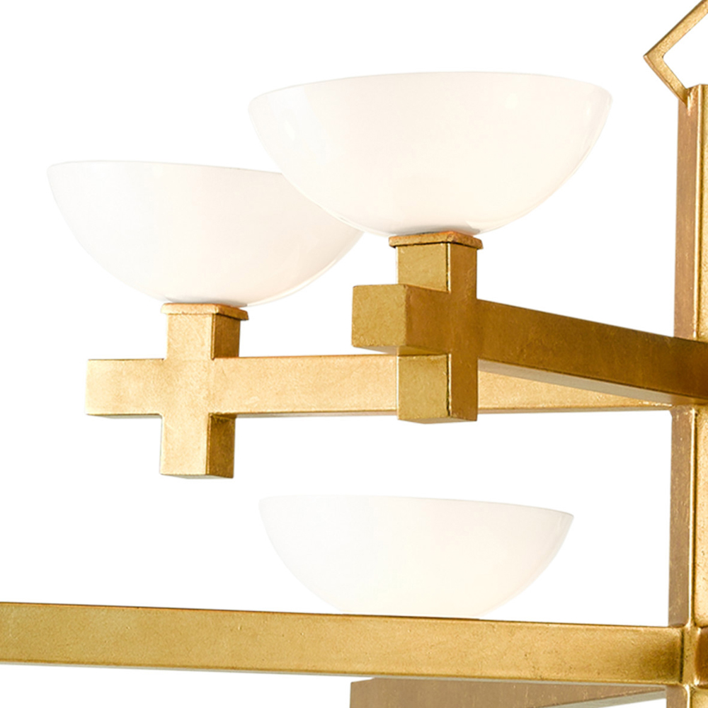 Люстра золотая с 8-ю молочными плафонами в виде чаши Tiers of Clear Lines