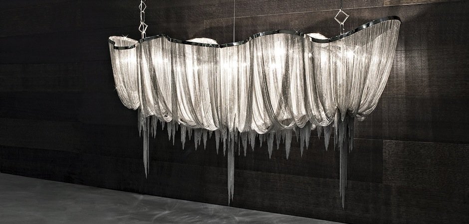 ЛЮСТРА ATLANTIS ALUMINIUM CHAIN из коллекции Atlantis от Terzani выполнен по дизайну Barlas Baylar. Замысловатая форма данной модели напоминает ниспадающий водопад. Плафон, состоит из множества черных металлических цепочек, соединенных между собой. Все цепочки крепятся к изогнутому, темному, хромированному основанию. Это настоящее произведение интерьерного искусства, которое будет наполнять теплом любое помещение и привлечет всеобщие восторженные взгляды.
