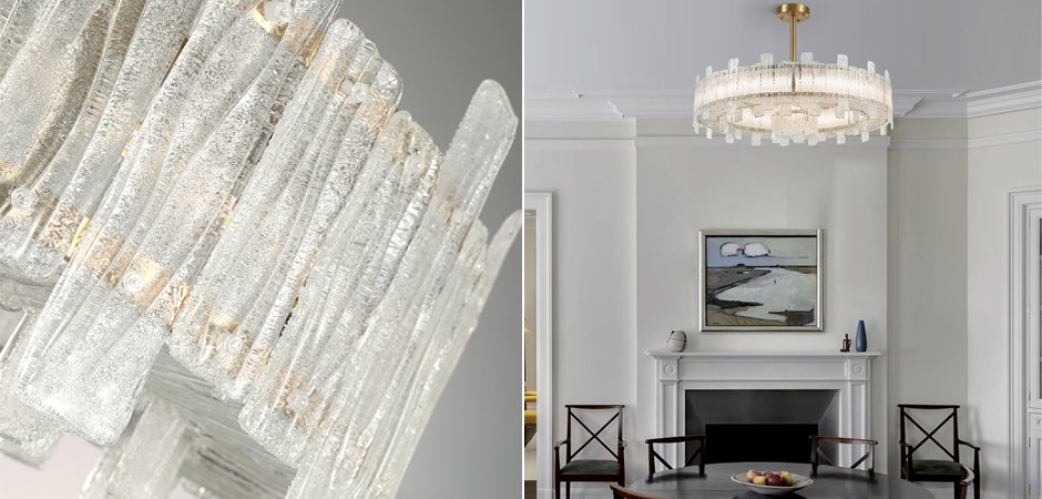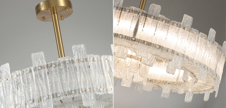Люстра предлагается в двух размерах, что позволяет выбрать идеальный вариант для вашего интерьера.