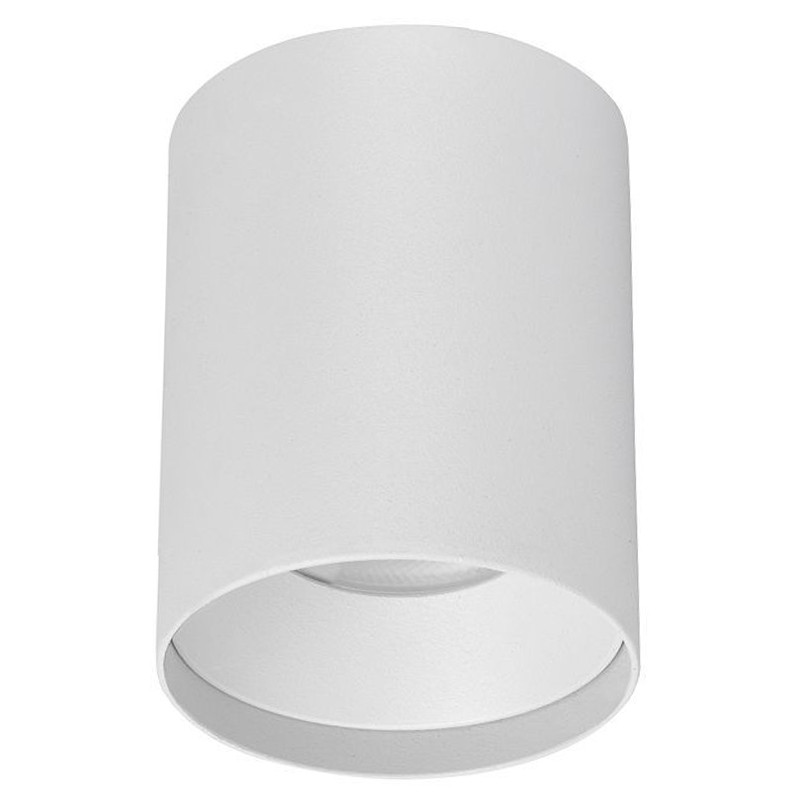 Цилиндрический светильник на шинопровод, белого цвета, с направленным вниз пучком света.