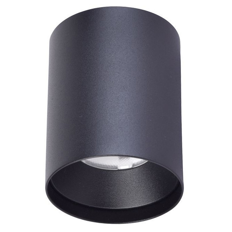 Цилиндрический светильник на шинопровод, черного цвета, с направленным вниз пучком света.