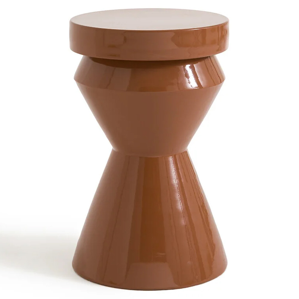 Металлическая основа столика выглядит мощно и прочно, воплощая энергию стальной конструкции. Ее коричневый цвет символизирует землю и тропическую пустыню, передавая ощущение тепла, силы и стойкости.