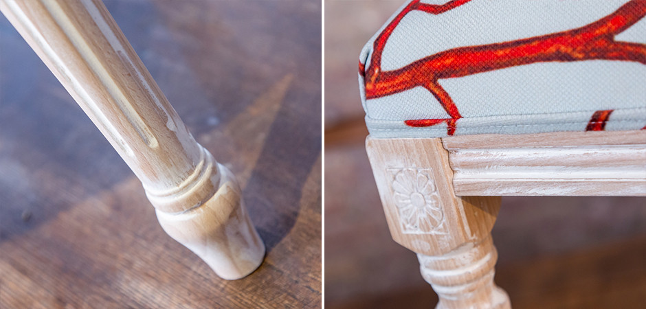 – Стул изготовлен из прочного бука и обит приятным на ощупь велюром, гарантируя комфорт при сидении.