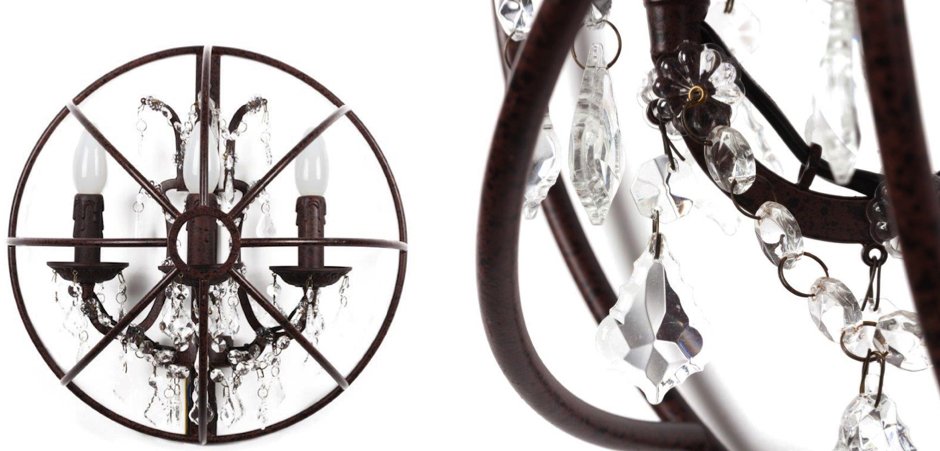 Настенный светильник Foucault's Orb Crystal Wall изготовлен из металла, в темно-коричневом цвете, с тремя подсвечниками и декорирован хрустальными подвесками, заключен в металлические сферы. Достойно займет свое место у камина.