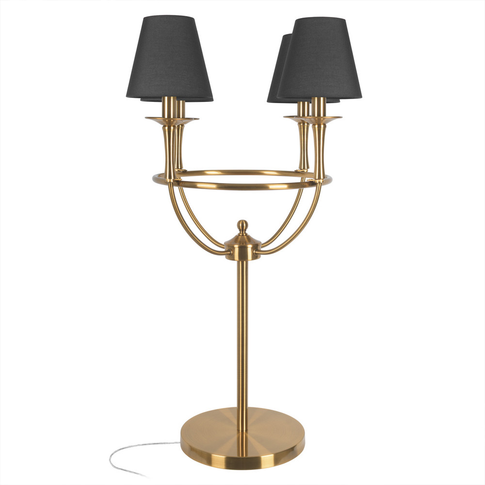 Настольная лампа на металлическом основании бронзового цвета с 4-мя черными конусовидными абажурами Dignity