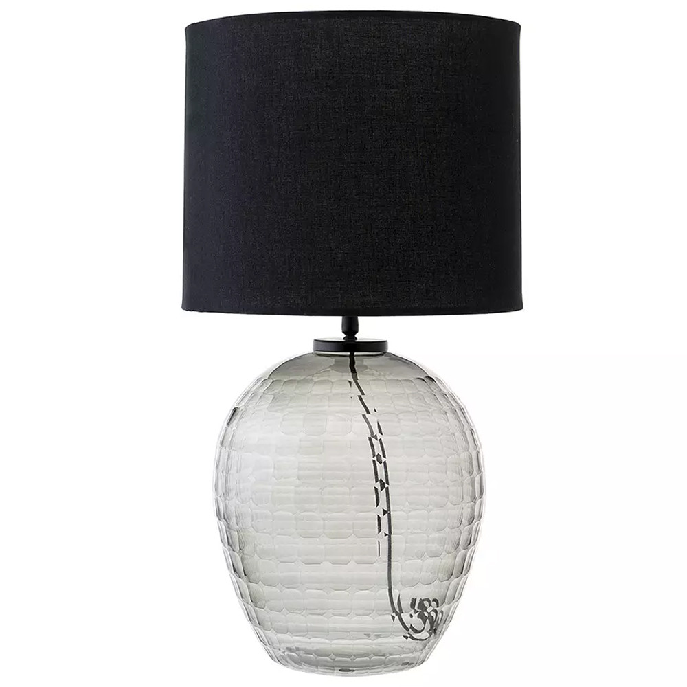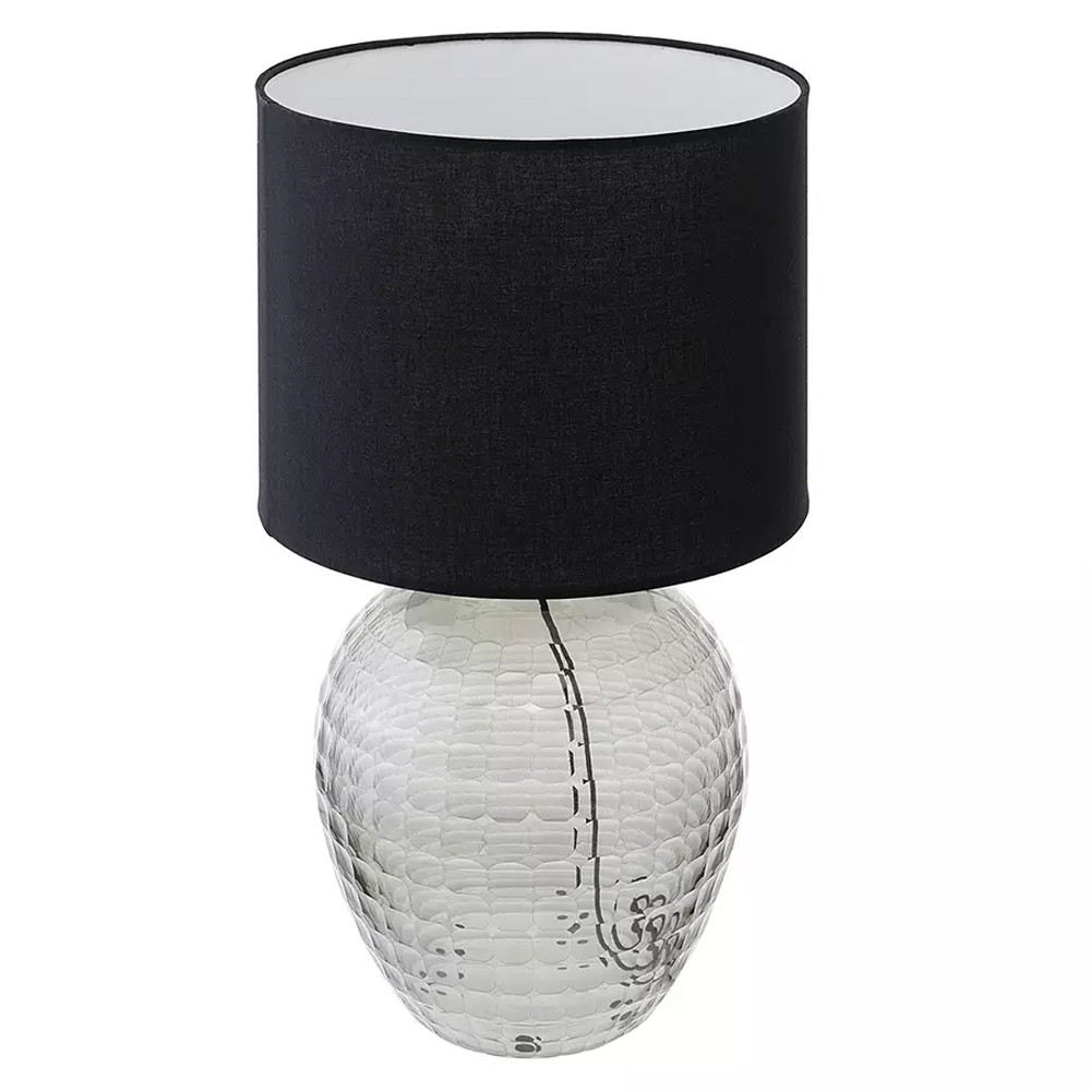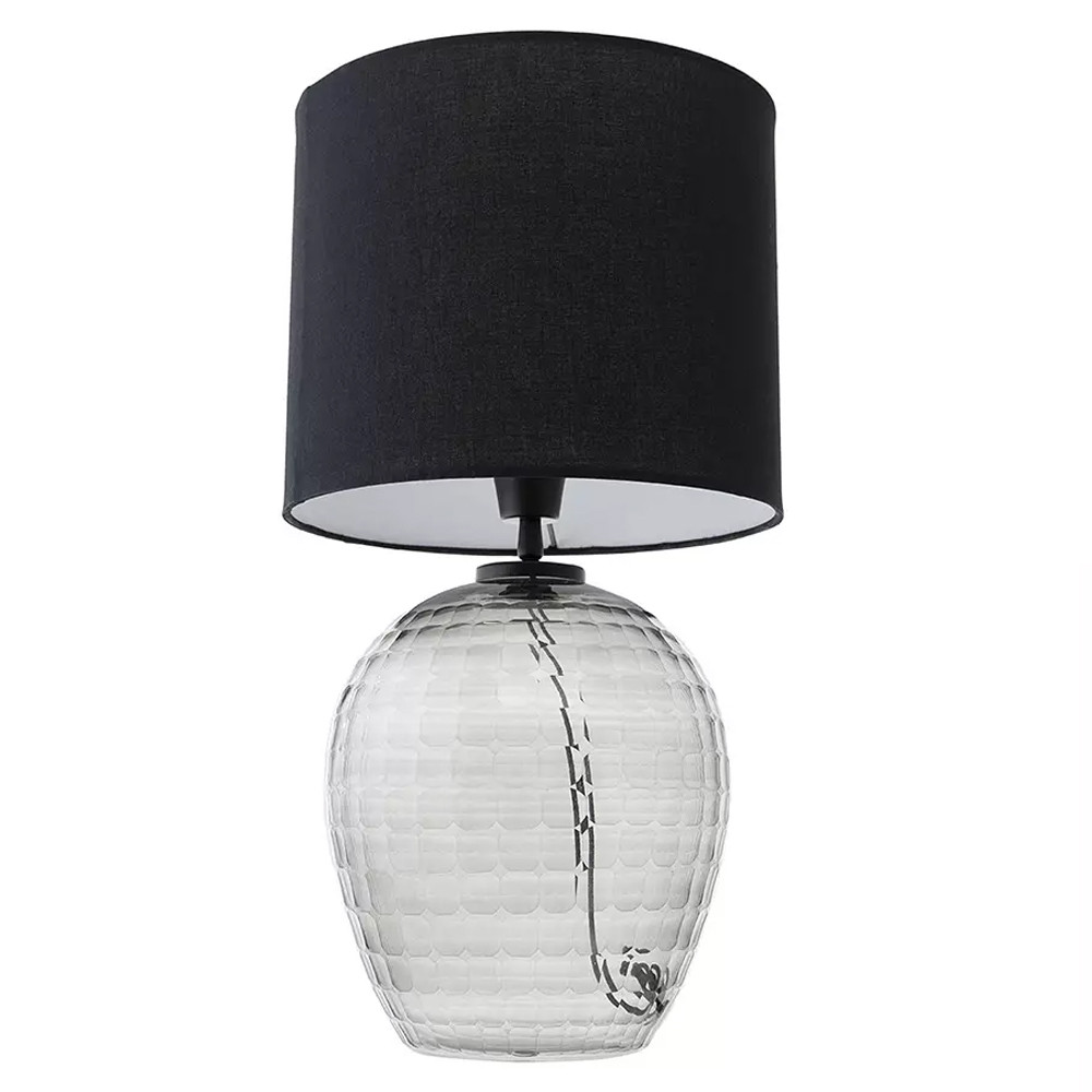 Настольная лампа с черным цилиндрическим тканевым абажуром и фактурным прозрачным основанием Black Cone